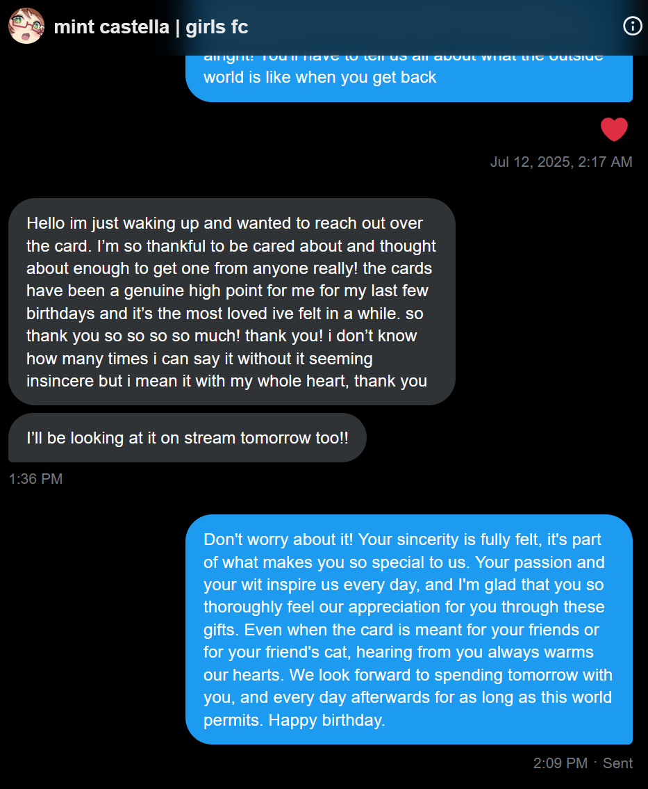 >>106586385dude is out of his mind and has no clue how difficult and sick meat is when she's not streaming. she is a nice person, though.