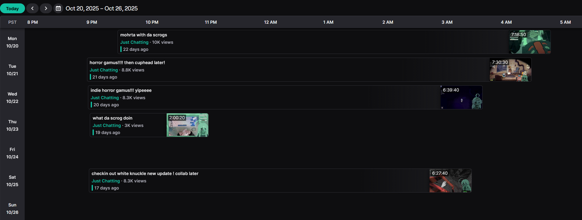 the only memorable chatter for me is this guy that literally never knows what the fuck is going on stream ever because most of his chat messages are saying hes going afk and announcing that he's back from being afkwon't name him because hes harmless though and it is kinda funny