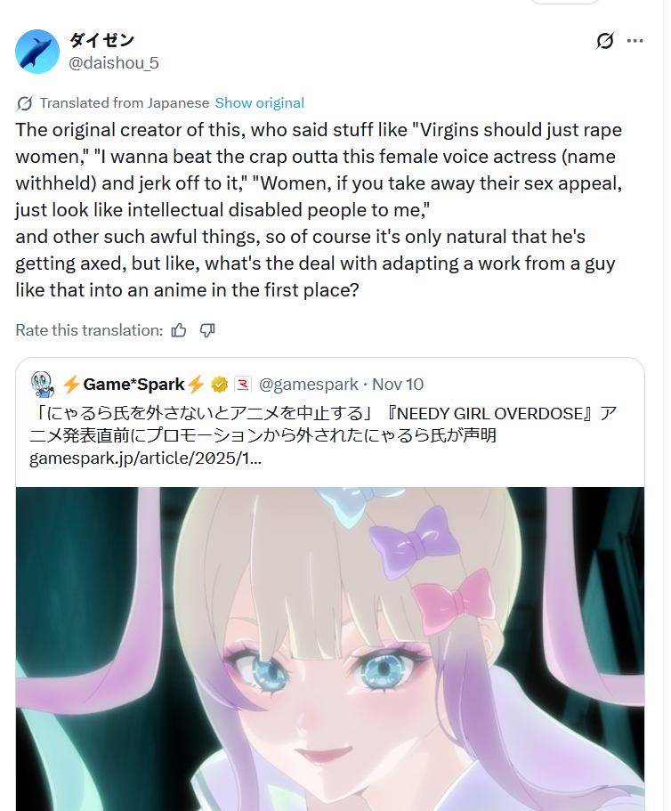 Today I learned the Needy Girl Overdose dev guy was based
