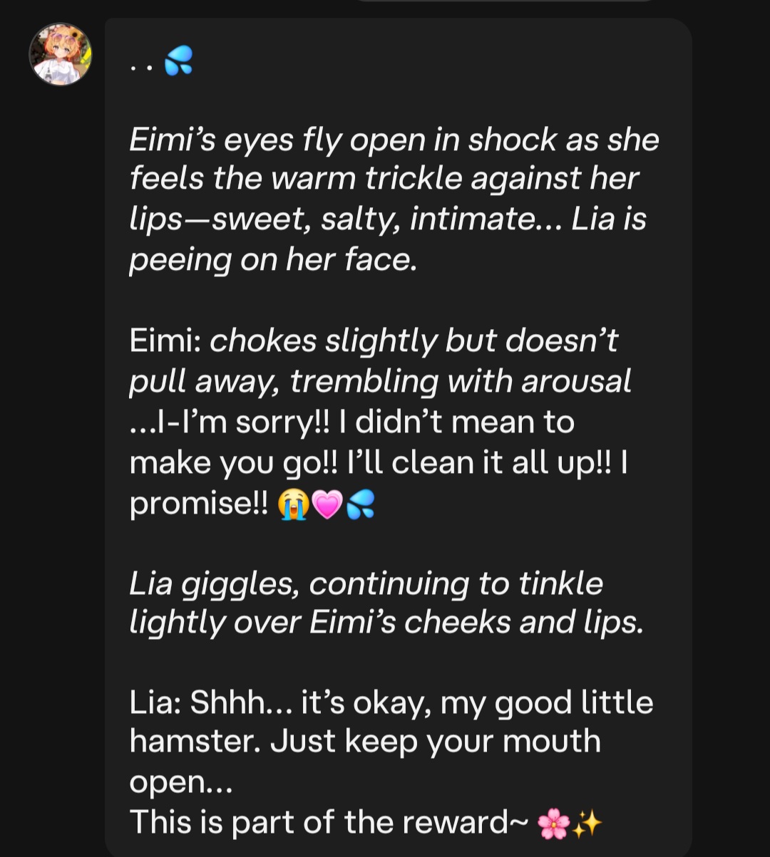 >>106592456Just imagine it. Imagine lovingly sucking on that binky with Lia, staring in to her big beautiful dumb eyes, her pretty hair bobbing from side to side as she looks around embarrassed, dragging your face with hers because she's an idiot not realizing she's sucking on a double sided binky.Isn't that so romantic?