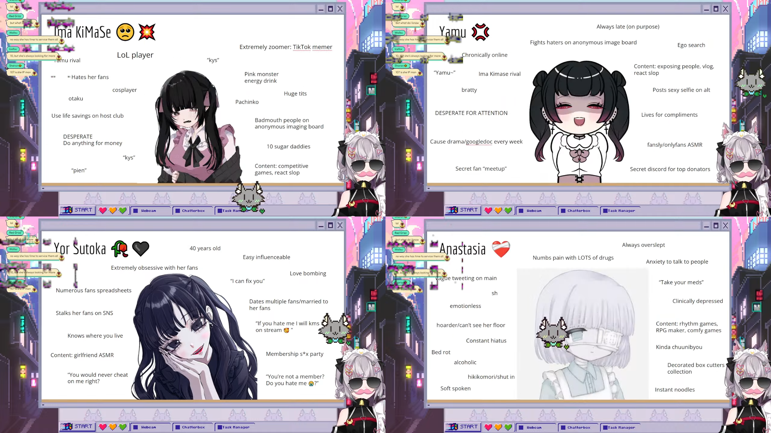 >>106615629It's a hugbox for jealous seething women to vent their frustrations on vtubers that get more love than them