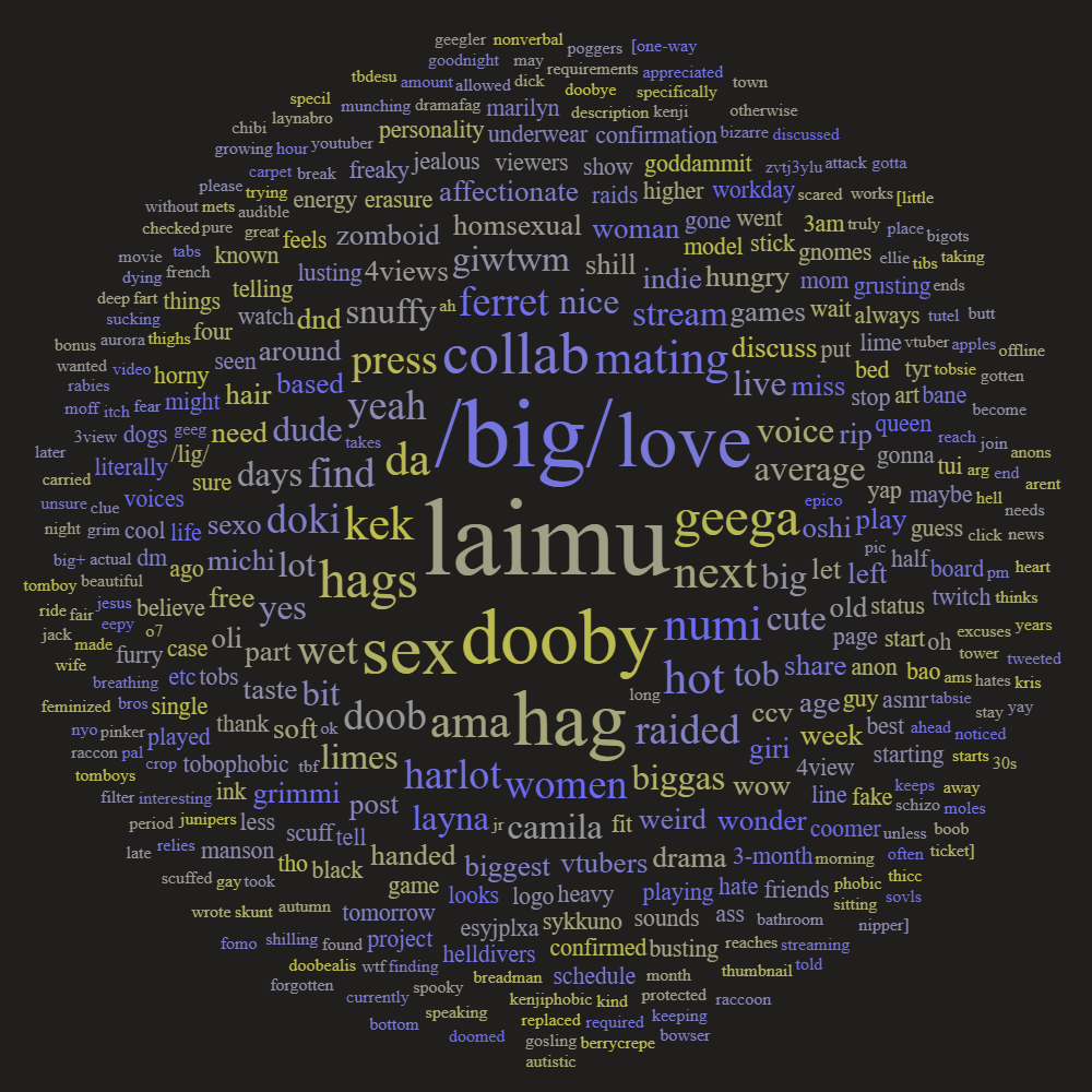 DOO/BIG/ Edition>What is /BIG/?/BIG/ is a thread to find, share, and discuss the biggest indie vtubers who have a 3-month average of 1000 viewers or more.>Can I shill my 999 CCV oshi here?No. 4views or higher only.>Live /BIG/shttps://vt.rita.moe/?tag=thread:/BIG/>Wordcloud creatorhttps://catalog.neet.tv/harlequin.html>/BIG/ logohttps://files.catbox.moe/jk4ric.png>Vod channelshttps://rentry.org/Indie_Vod_Archives_lig>Ferrets!https://www.twitch.tv/ferretsoftwareOther useful threads:>>>/vt//lig/>>>/vt//xvsj+/>>>/vt//swarm/>>>/vt//flip/>>>/vt//haha/>>>/vt//mint/Previous thread: >>106581415