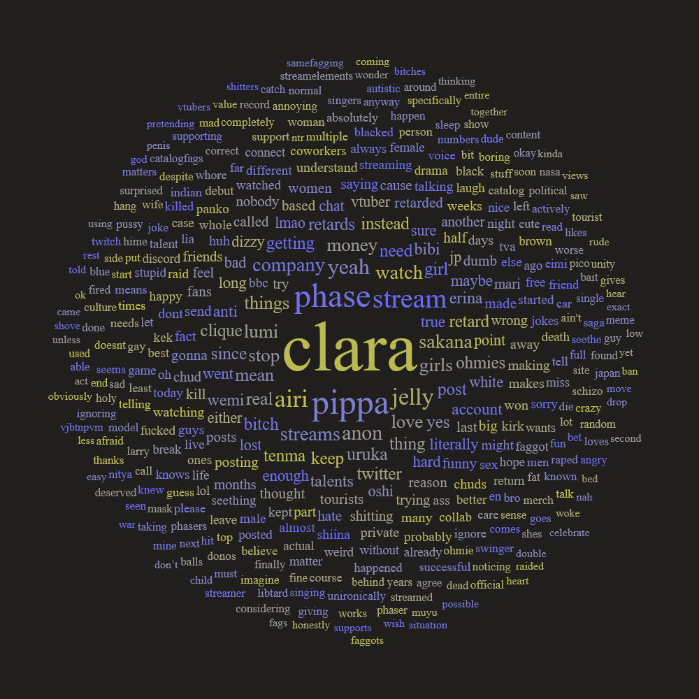 >>106622696>lol women>faggot can't esl>stupid lumi lost>yeah jelly pippa won>retarded brown literally>don't support vtuber spamwhat does it mean