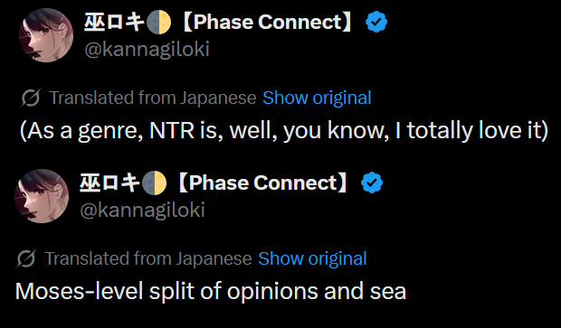 >>106626055>Jap loves NTRMake sure your next thread after that is about the sky being blue or water being wet.