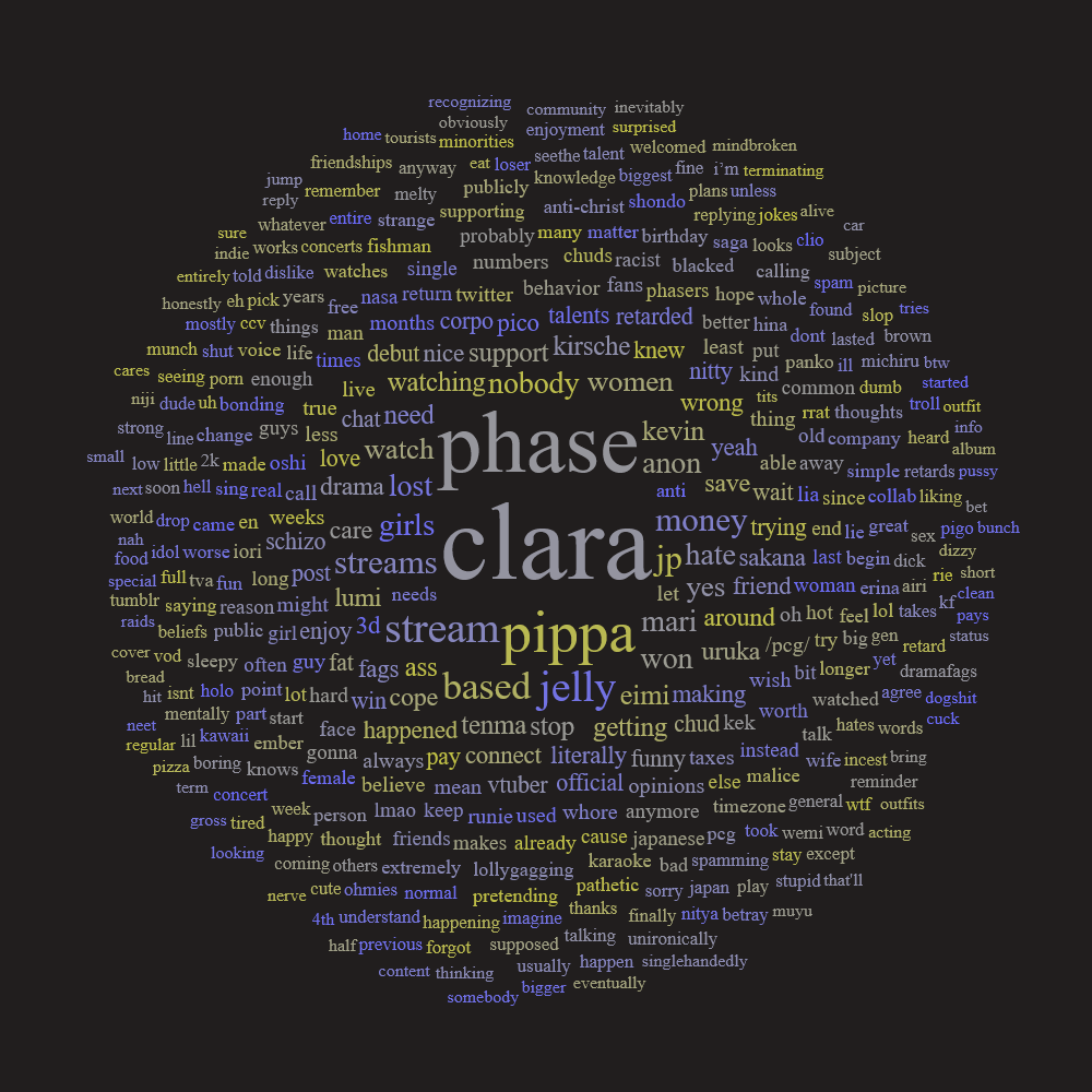 >>106628171She isn't as heavily botted as some people believe, she's similar to Tenma; people don't watch her to chat or engage with the wider community, she's primarily background noise.