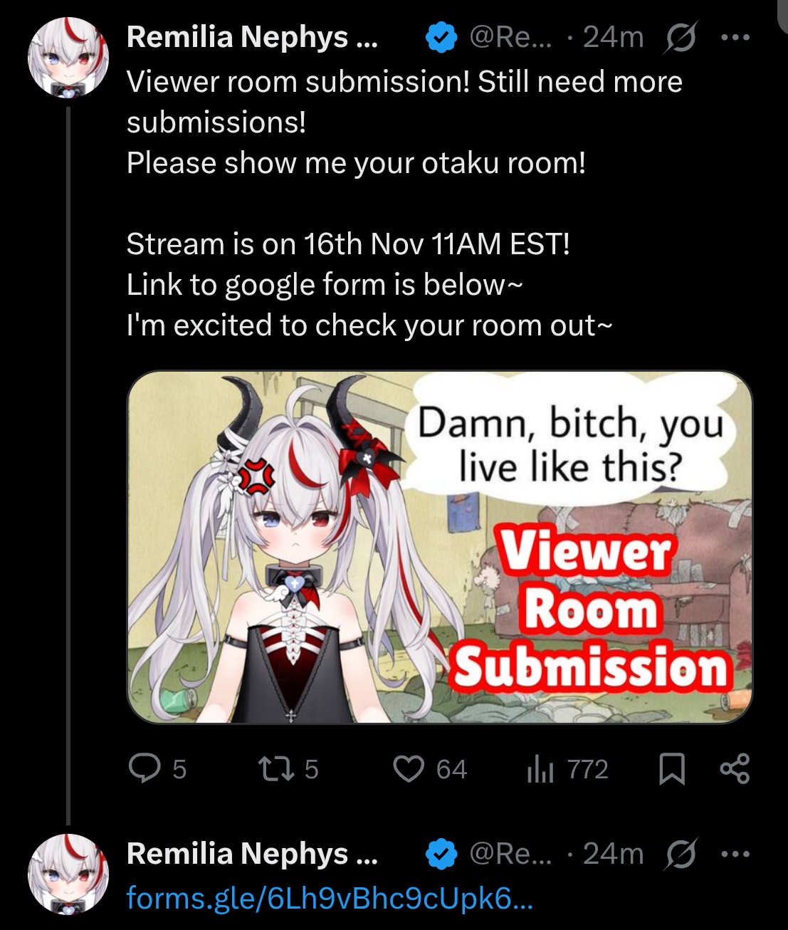 >>106628961She's been flaky as indie as well, she just recently regained her groove again. My guess is she felt bad for being unable to keep a consistent schedule and chose to step down