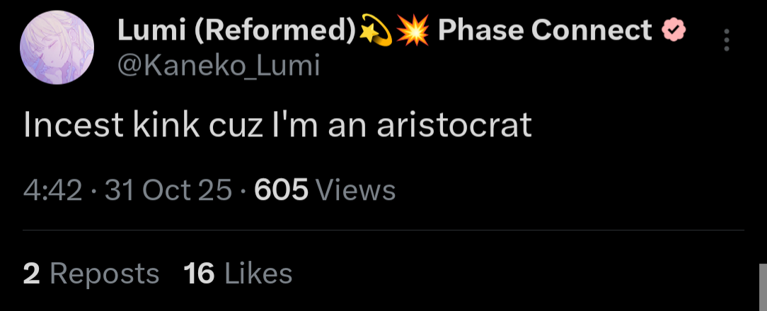 ▼ Phase Connect LinksOfficial Website: https://phase-connect.comOfficial Schedule: https://schedule.phase-connect.comOfficial Twitter: https://x.com/PhaseConnect | https://x.com/PhaseConnectJPOfficial Character References: https://rentry.org/pcgreferencesOfficial Twitch Archive Channels: https://rentry.org/pcgtwitcharchiveUnofficial Phase Connect Archives: https://rentry.org/pcgunofficialarchive––––––––––––––––––––––––––––––––––◆【Lia】https://x.com/rinkouashelia | https://youtube.com/RinkouAshelia | https://twitch.tv/asheliarinkou◆【Utatane Nasa】転寝ナサ (JP) https://x.com/UtataneNasa | https://youtube.com/UtataneNasa | https://twitch.tv/utatanenasa ◆【Hakushika Iori】白鹿いおり (JP + EN) https://x.com/hakushikaiori | https://youtube.com/HakushikaIori | https://twitch.tv/iorihakushika ◆【Fujikura Uruka】https://x.com/fujikurauruka | https://youtube.com/FujikuraUruka | https://twitch.tv/fujikurauruka ◆【Shisui Michiru】紫翠みちる (JP) https://x.com/shisuimichiru | https://youtube.com/ShisuiMichiru | https://twitch.tv/michiru_shisui ◆【Tenma Maemi】https://x.com/tenmamaemi | https://youtube.com/TenmaMaemi | https://twitch.tv/tenma ◆【Pipkin Pippa】https://x.com/pipkinpippa | https://youtube.com/PipkinPippa | https://twitch.tv/pippa ––––––––––––––––––––––––––––––––––◆【Kaneko Lumi】https://x.com/kaneko_lumi | https://youtube.com/KanekoLumi | https://twitch.tv/kanekolumi ◆【Fuura Yuri】[Terminated] https://x.com/AmarisYuri | Archive: https://youtube.com/@TheNationalFuuraYuriArchive◆【Dizzy Dokuro】https://x.com/dizzydokuro | https://youtube.com/@dizzydokuro | https://twitch.tv/dizzydokuro ◆【Jelly Hoshiumi】https://x.com/jellyhoshiumi | https://youtube.com/@jellyhoshiumi | https://twitch.tv/jellyhoshiumi ◆【Ember Amane】https://x.com/emberamane | https://youtube.com/@EmberAmane | https://twitch.tv/emberamane ◆【Clio Aite】https://x.com/ClioAite | https://youtube.com/@ClioAite | https://twitch.tv/clioaite ◆【MariMari_en】https://x.com/MARIMARI_EN | https://youtube.com/@MARIMARI_EN | https://twitch.tv/marimari_en ◆【Eepy Sleepy】https://x.com/EepySleepyCh | https://www.youtube.com/@EepySleepyCh | https://twitch.tv/EepySleepyCh––––––––––––––––––––––––––––––––––◆【Remilia Nephys】https://x.com/Remilia_Nephys | https://youtube.com/RemiliaNephys | https://twitch.tv/remilianephys ◆【Chisaka Airi】https://x.com/ChisakaAiri | https://youtube.com/ChisakaAiri | https://twitch.tv/chisakaairi ◆【Amanogawa Shiina】https://x.com/AmanogawaShiina | https://youtube.com/AmanogawaShiina | https://twitch.tv/amanogawashiina ◆【Himemiya Rie】https://x.com/HimemiyaRie | https://youtube.com/HimemiyaRie | https://twitch.tv/himemiyarie ◆【Erina Makina】https://x.com/ErinaMakina | https://youtube.com/ErinaMakina | https://twitch.tv/erinamakina ◆【Komachi Panko】https://x.com/komachipanko | https://youtube.com/KomachiPanko | https://twitch.tv/komachipanko ––––––––––––––––––––––––––––––––––◆【Runie Ruse】https://x.com/RunieRuse | https://youtube.com/@RunieRuse | https://twitch.tv/RunieRuse◆【Eimi Isami】https://x.com/eimiisami | https://youtube.com/@eimiisami | https://twitch.tv/eimiisami ◆【Muu Muyu】https://x.com/Muu_Muyu | https://youtube.com/@MuuMuyu | https://twitch.tv/MuuMuyu ◆【Hikanari Hina】https://x.com/HikanariHina | https://youtube.com/@HikanariHina | https://twitch.tv/HikanariHina ◆【Saya Sairroxs】[Hort] https://x.com/sayasairroxs | https://youtube.com/@sayasairroxs | https://twitch.tv/sayasairroxs ––––––––––––––––––––––––––––––––––◆【Kannagi Loki】巫ロキ (JP) https://x.com/kannagiloki | https://youtube.com/@kannagiloki◆【Kokoromo Memory】恋衣めもり (JP) https://x.com/kokoromomemory | https://youtube.com/@kokoromomemory_ | https://twitch.tv/kokoromomemory ◆【Gram Pico】倉夢ぴこ (JP) https://x.com/grampico_ | https://youtube.com/@grampico | https://twitch.tv/grampico ◆【Ayase Yuu】絢世ユウ (JP) https://x.com/ayaseyuuu | https://youtube.com/@ayaseyuu | https://twitch.tv/ayaseyuu_ ◆【Kaminari Clara】歌美鳴クララ (EN + JP) https://x.com/kaminariclara_ | https://youtube.com/@kaminariclara | https://twitch.tv/kaminariclara––––––––––––––––––––––––––––––––––◆【Bibi Biscuit】https://x.com/BibiBiscuitCh | https://www.youtube.com/@bibibiscuitch | https://www.twitch.tv/bibibiscuitch ◆【Sinon Sinfonia】https://x.com/SinonSinfonia | https://www.youtube.com/@SinonSinfonia | https://www.twitch.tv/sinonsinfonia ◆【Wilhelmina Frost】https://x.com/wilhelminafr0st | https://www.youtube.com/@wilhelminafrost | https://www.twitch.tv/wilhelminafrost ◆【Anya Nyabyss】https://x.com/AnyaNyabyss | https://www.youtube.com/@AnyaNyabyss | https://www.twitch.tv/anyanyabyss ◆【Malice Evermore】https://x.com/MaliceEvermore | https://www.youtube.com/@maliceevermore | https://www.twitch.tv/maliceevermore ◆【Nitya Nil】https://x.com/Nitya_Nil | https://www.youtube.com/@Nitya_Nil | https://www.twitch.tv/nitya_nilPrevious Thread: >>106622607