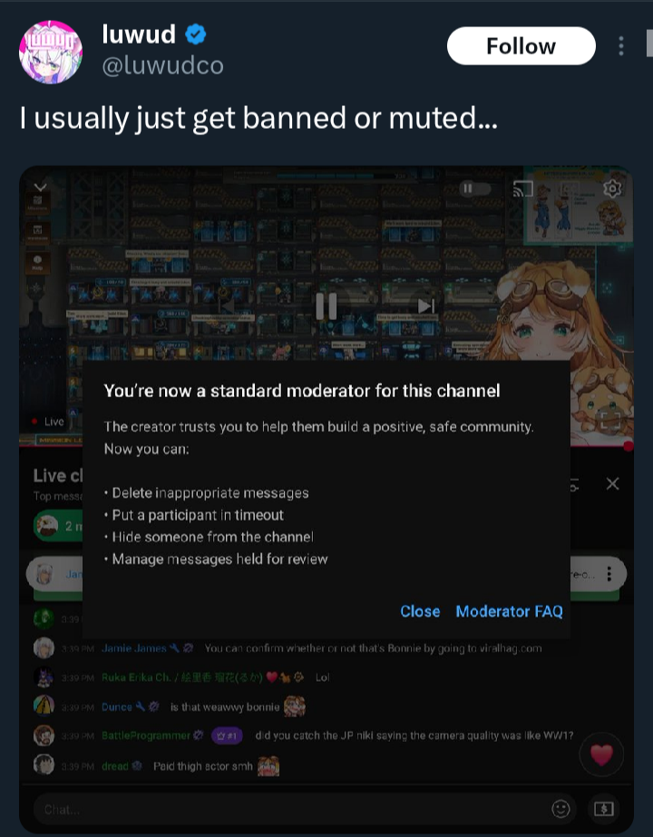 >>106669826>the thread sucks right nowWe have two separate communities actively watching and enjoying streams. Even if you hate Bonnie fleshposting, and hate REM being British; I dont know how you cant consider this well over average