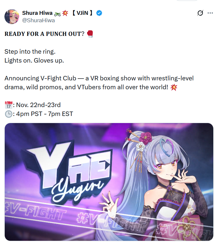 https://x.com/ShuraHiwa/status/1989468388167684495Bonnie, Nene, Pillow and Yae in this VR Boxing event