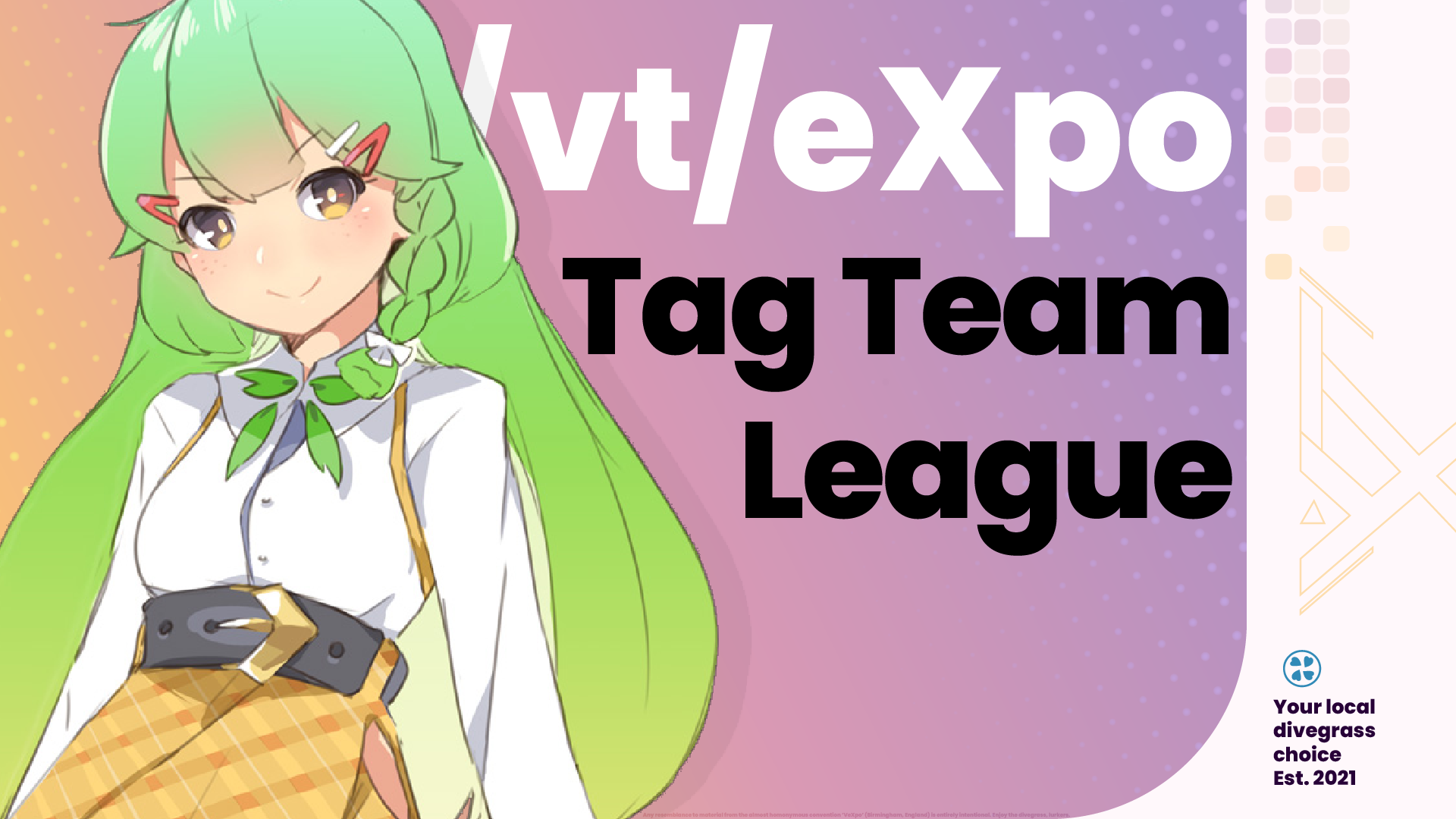>【DIVEGRASS NEWS】/justice/ caretaker here, and today is the day! In around 15 min, /vt/eXpo kicks off!As reminder, it's a friendlies tournament with the "twist" of playing as a tag team. For this occasion /justice/ merge with /baubau/, as /K-9/!>Stream:http://vtleague.420699.xyz/>Thread:>>106663005Our match is the 2nd one (and we play again tomorrow), so check it out!