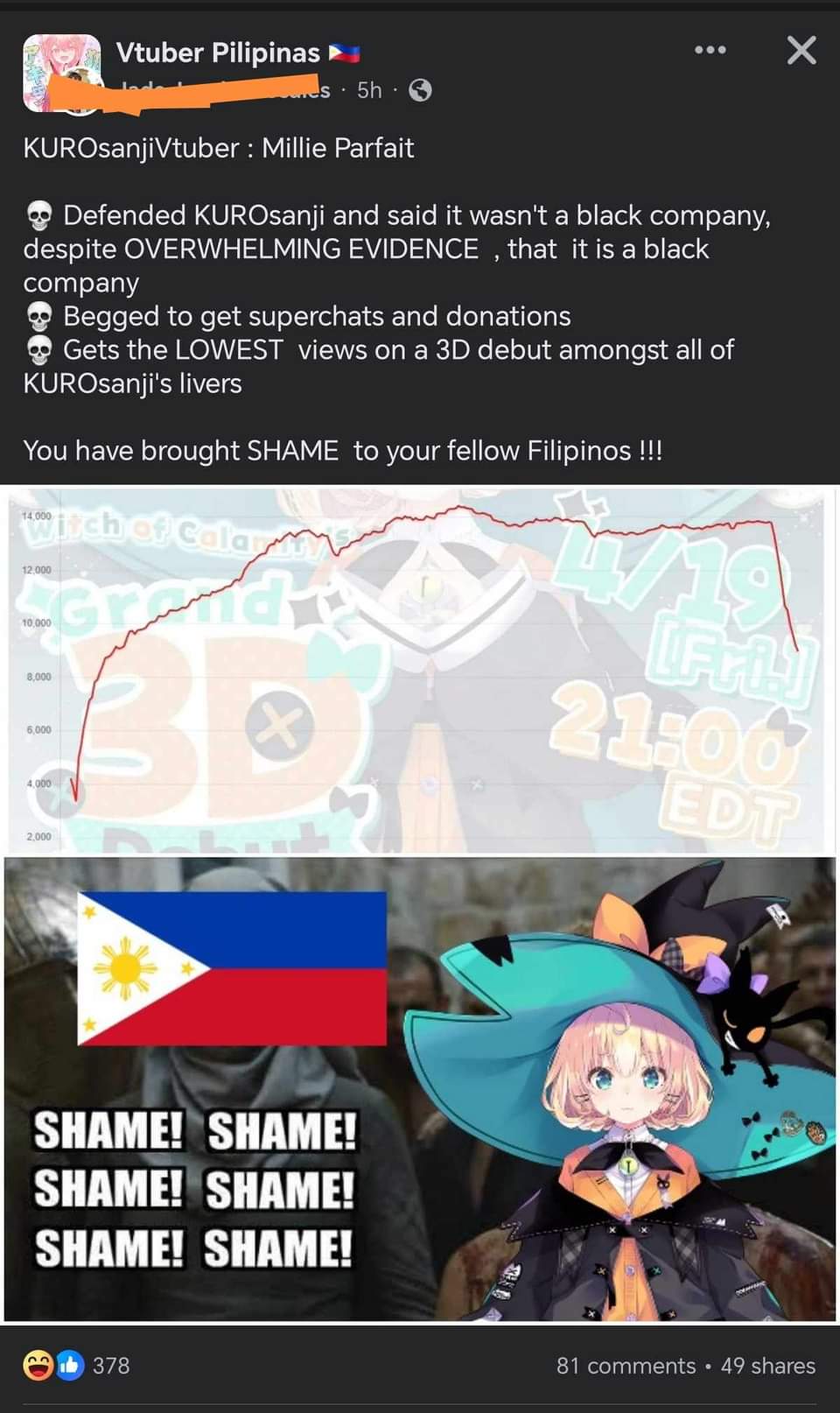 There's a large clique of big time vtubers and their friends and mods, and they decide who is the in-crowd and who isn't. They also blacklist certain people and fans within and from the community