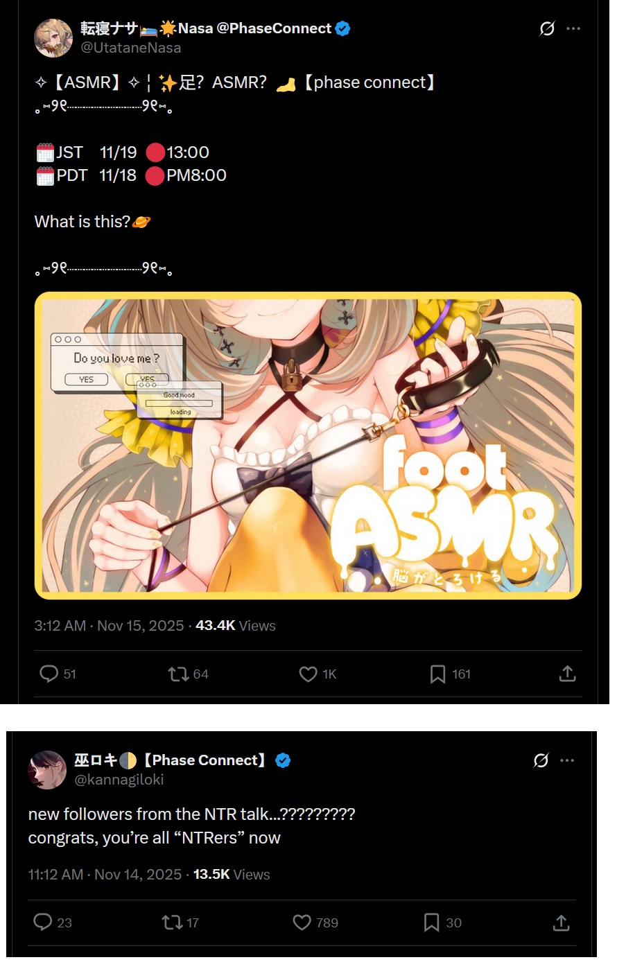 ▼ Phase Connect LinksOfficial Website: https://phase-connect.comOfficial Schedule: https://schedule.phase-connect.comOfficial Twitter: https://x.com/PhaseConnect | https://x.com/PhaseConnectJPOfficial Character References: https://rentry.org/pcgreferencesOfficial Twitch Archive Channels: https://rentry.org/pcgtwitcharchiveUnofficial Phase Connect Archives: https://rentry.org/pcgunofficialarchive––––––––––––––––––––––––––––––––––◆【Lia】https://x.com/rinkouashelia | https://youtube.com/RinkouAshelia | https://twitch.tv/asheliarinkou◆【Utatane Nasa】転寝ナサ (JP) https://x.com/UtataneNasa | https://youtube.com/UtataneNasa | https://twitch.tv/utatanenasa◆【Hakushika Iori】白鹿いおり (JP + EN) https://x.com/hakushikaiori | https://youtube.com/HakushikaIori | https://twitch.tv/iorihakushika◆【Fujikura Uruka】https://x.com/fujikurauruka | https://youtube.com/FujikuraUruka | https://twitch.tv/fujikurauruka◆【Shisui Michiru】紫翠みちる (JP) https://x.com/shisuimichiru | https://youtube.com/ShisuiMichiru | https://twitch.tv/michiru_shisui◆【Tenma Maemi】https://x.com/tenmamaemi | https://youtube.com/TenmaMaemi | https://twitch.tv/tenma◆【Pipkin Pippa】https://x.com/pipkinpippa | https://youtube.com/PipkinPippa | https://twitch.tv/pippa––––––––––––––––––––––––––––––––––◆【Kaneko Lumi】https://x.com/kaneko_lumi | https://youtube.com/KanekoLumi | https://twitch.tv/kanekolumi◆【Fuura Yuri】[Terminated] https://x.com/AmarisYuri | Archive: https://youtube.com/@TheNationalFuuraYuriArchive◆【Dizzy Dokuro】https://x.com/dizzydokuro | https://youtube.com/@dizzydokuro | https://twitch.tv/dizzydokuro◆【Jelly Hoshiumi】https://x.com/jellyhoshiumi | https://youtube.com/@jellyhoshiumi | https://twitch.tv/jellyhoshiumi◆【Ember Amane】https://x.com/emberamane | https://youtube.com/@EmberAmane | https://twitch.tv/emberamane◆【Clio Aite】https://x.com/ClioAite | https://youtube.com/@ClioAite | https://twitch.tv/clioaite◆【MariMari_en】https://x.com/MARIMARI_EN | https://youtube.com/@MARIMARI_EN | https://twitch.tv/marimari_en◆【Eepy Sleepy】https://x.com/EepySleepyCh | https://www.youtube.com/@EepySleepyCh | https://twitch.tv/EepySleepy––––––––––––––––––––––––––––––––––◆【Remilia Nephys】https://x.com/Remilia_Nephys | https://youtube.com/RemiliaNephys | https://twitch.tv/remilianephys◆【Chisaka Airi】https://x.com/ChisakaAiri | https://youtube.com/ChisakaAiri | https://twitch.tv/chisakaairi◆【Amanogawa Shiina】https://x.com/AmanogawaShiina | https://youtube.com/AmanogawaShiina | https://twitch.tv/amanogawashiina◆【Himemiya Rie】https://x.com/HimemiyaRie | https://youtube.com/HimemiyaRie | https://twitch.tv/himemiyarie◆【Erina Makina】https://x.com/ErinaMakina | https://youtube.com/ErinaMakina | https://twitch.tv/erinamakina◆【Komachi Panko】https://x.com/komachipanko | https://youtube.com/KomachiPanko | https://twitch.tv/komachipanko––––––––––––––––––––––––––––––––––◆【Runie Ruse】https://x.com/RunieRuse | https://youtube.com/@RunieRuse | https://twitch.tv/RunieRuse◆【Eimi Isami】https://x.com/eimiisami | https://youtube.com/@eimiisami | https://twitch.tv/eimiisami◆【Muu Muyu】https://x.com/Muu_Muyu | https://youtube.com/@MuuMuyu | https://twitch.tv/MuuMuyu◆【Hikanari Hina】https://x.com/HikanariHina | https://youtube.com/@HikanariHina | https://twitch.tv/HikanariHina◆【Saya Sairroxs】[Hort] https://x.com/sayasairroxs | https://youtube.com/@sayasairroxs | https://twitch.tv/sayasairroxs––––––––––––––––––––––––––––––––––◆【Kannagi Loki】巫ロキ (JP) https://x.com/kannagiloki | https://youtube.com/@kannagiloki ◆【Kokoromo Memory】恋衣めもり (JP) https://x.com/kokoromomemory | https://youtube.com/@kokoromomemory_ | https://twitch.tv/kokoromomemory◆【Gram Pico】倉夢ぴこ (JP) https://x.com/grampico_ | https://youtube.com/@grampico | https://twitch.tv/grampico◆【Ayase Yuu】絢世ユウ (JP) https://x.com/ayaseyuuu | https://youtube.com/@ayaseyuu | https://twitch.tv/ayaseyuu_◆【Kaminari Clara】歌美鳴クララ (EN + JP) https://x.com/kaminariclara_ | https://youtube.com/@kaminariclara | https://twitch.tv/kaminariclara––––––––––––––––––––––––––––––––––◆【Malice Evermore】https://x.com/MaliceEvermore | https://www.youtube.com/@maliceevermore | https://www.twitch.tv/maliceevermore◆【Nitya Nil】https://x.com/Nitya_Nil | https://www.youtube.com/@Nitya_Nil | https://www.twitch.tv/nitya_nil◆【Wilhelmina Frost】https://x.com/wilhelminafr0st | https://www.youtube.com/@wilhelminafrost | https://www.twitch.tv/wilhelminafrost◆【Bibi Biscuit】https://x.com/BibiBiscuitCh | https://www.youtube.com/@bibibiscuitch | https://www.twitch.tv/bibibiscuitch◆【Anya Nyabyss】https://x.com/AnyaNyabyss | https://www.youtube.com/@AnyaNyabyss | https://www.twitch.tv/anyanyabyss◆【Sinon Sinfonia】https://x.com/SinonSinfonia | https://www.youtube.com/@SinonSinfonia | https://www.twitch.tv/sinonsinfoniaPrevious Thread: >>106691455