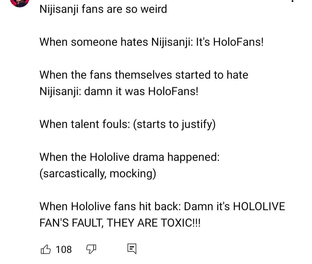 >>106727115Nice try sister but Nijis fanbase is so fucking vile that its reputation broke containment and they're known for being disgusting horde of fujoshi even outside vtuber fans