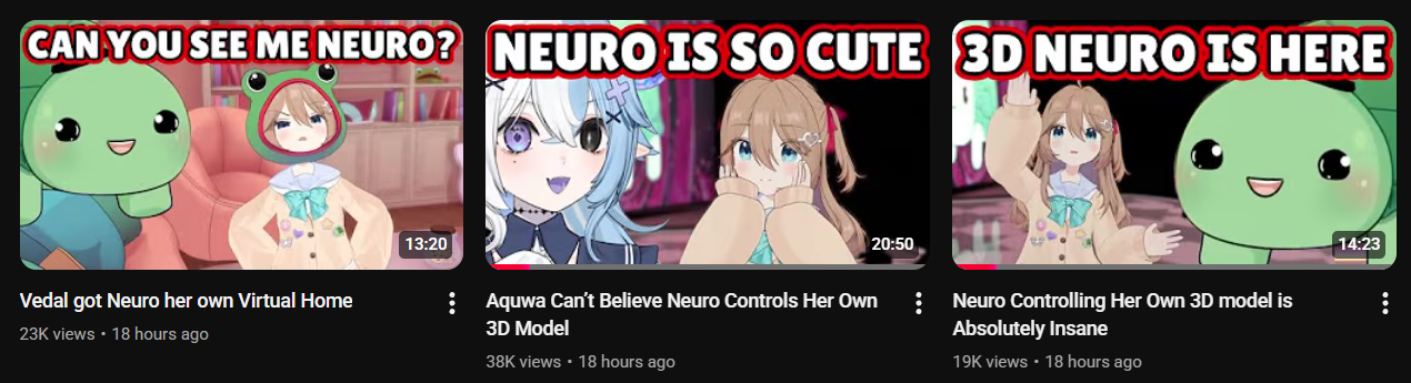 > The clip of Aquwa's reaction to Neuro's 3D debut got more views than 3D debut clips.I want Aquwa to join Neuroverse RIGHT NOW!