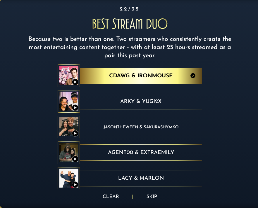 >Conker and Mouse for best stream duo
