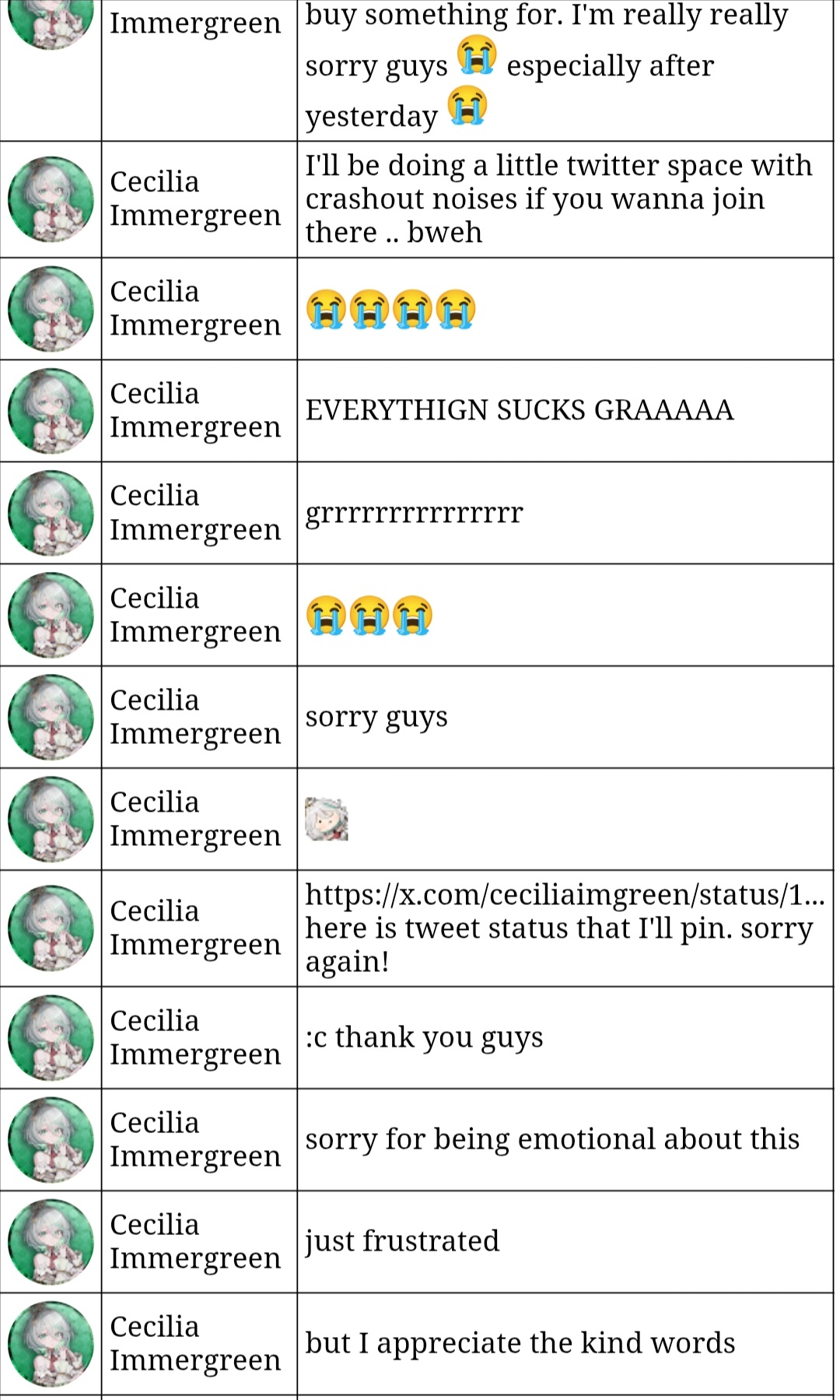 >say goodbye to lispy ceciliais she /here/? or did somebody snitched?