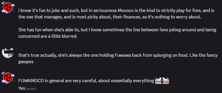 >>106762351Mococo wouldn't let Fuwawa buy them fish cake to add to their Fuwawa soup... instead she spent it on expensive gourmet grapes...
