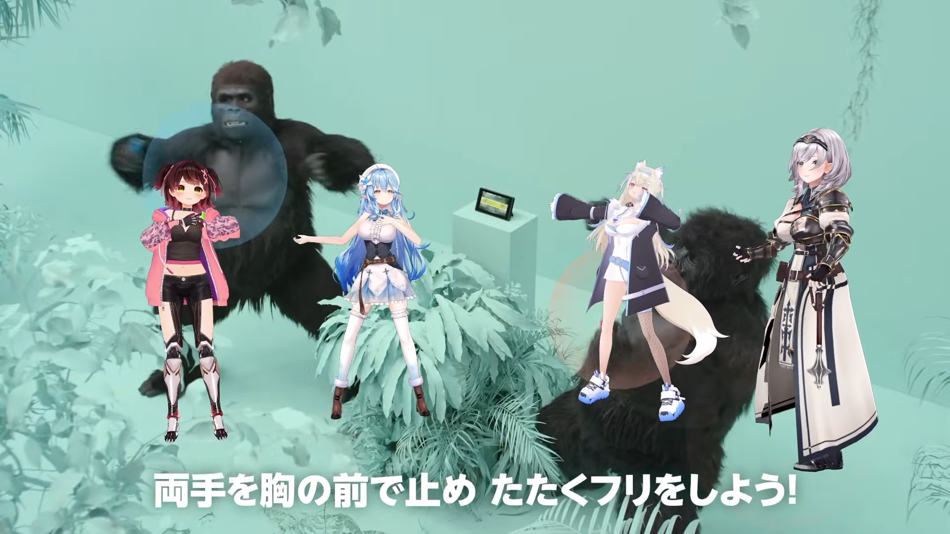 >Fuwawa dancing in the background