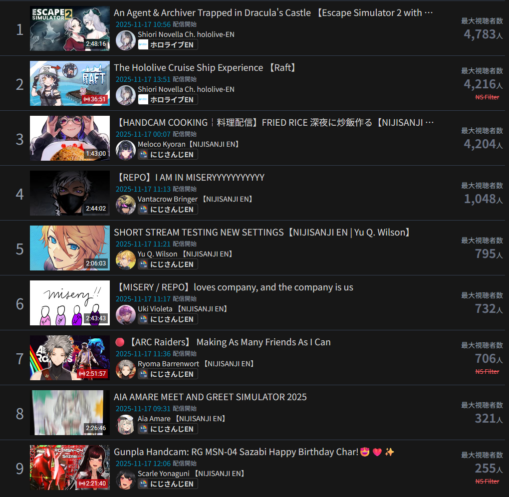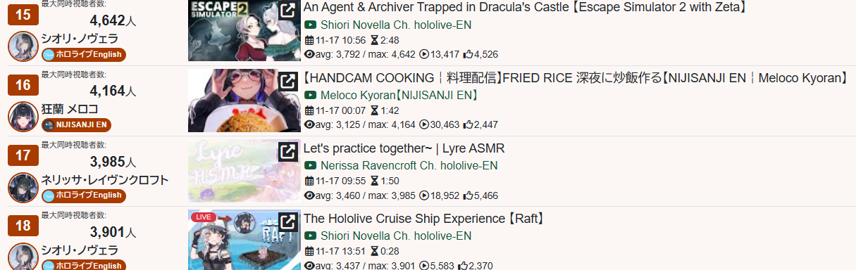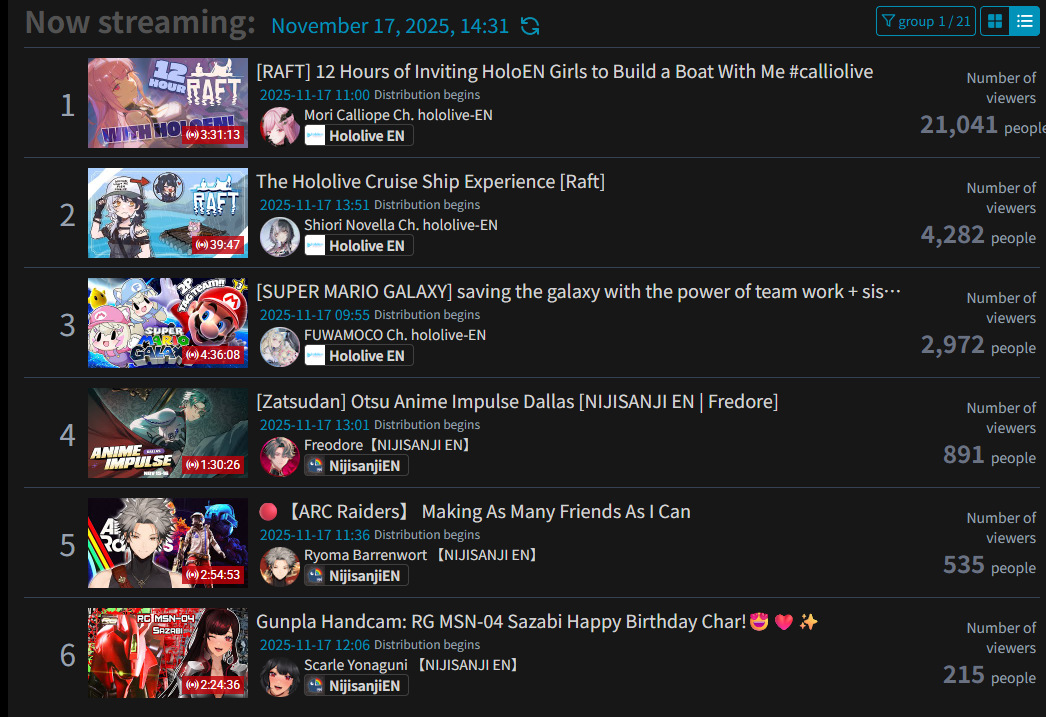 >>106764292>>106764335>>106764270>>106764265Those are clankers. Same type with Ohayama and friends. It's just HoloEN has more real viewers so the graph looks more organic.