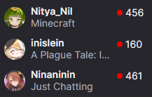 Headshot Edition >What is /lig/?/lig/ is a thread for viewers to find, share, and discuss indie vtubers who have on average 500 viewers or more.>Why /lig/?Large indie vtubers have more net fans, but they are outnumbered by 2views by the thousands. This is a thread for the VIP, regardless of what language they stream on.>Can I shill my 499view oshi here?Considering averages fluctuate widely, all the way down to 100 is reasonable. The minimal requirement however is being Twitch partner or the YouTube equivalent in numbers.>Wait isn't that one a corpo?/lig/ is a thread for chuubas of a decent size who aren't defined by their corporate branding, either due to the small size of the corporation or the independence and lack of oversight granted to the talents>/lig/ Numbershttps://lignumbers.neocities.org/>Twitch Clips Guidehttps://pastelink.net/34vd5>VOD Archival Guidehttps://rentry.org/Vod_Archival_Guide>/lig/ VOD Archivehttps://rentry.org/Indie_Vod_Archives_lig>Koikatsu cardshttps://mega.nz/folder/JYtkXJwL#07gAQCQqI_9FsmX9oQJKSA>/lig/ Wheel of Nameshttps://wheelofnames.com/49w-z2x>Tiermakerhttps://tiermaker.com/create/-lig--16586688-3>/lig/ Chuuba Birthday Calendar (WIP)https://www.canva.com/design/DAE-XgWodVg/ofLz4QC1yPPQ4T6TTAE0fw/edit?utm_content=DAE-XgWodVg>Upcoming BirthdaysNovember 24th - Layna LazarNovember 27th - DashducksNovember 29th - FanguuNovember 30th - InisleinDecember 8th - FroggylochDecember 10th - VeibaeDecember 11th - NihmuneDecember 18th - SelkieDecember 19th - NeurosamaDecember 31st>OC material for the OPhttps://mega.nz/folder/IIVD1IaJ#cfsRhWdJvzneIoG8HZUPuw>/lig/booruhttps://ligbooru.moe/>Duckshttps://www.twitch.tv/dashducks (embed) (embed) (embed) (embed)Other useful threads:>>>/vt//big/>>>/vt//corpo/>>>/vt//choc/>>>/vt//flip/>>>/vt//haha/>>>/vt//indie/>>>/vt//mint/>>>/vt//swarm/>>>/vt//vrt/>>>/vt//xvsj+/Previous Thread: >>106799849