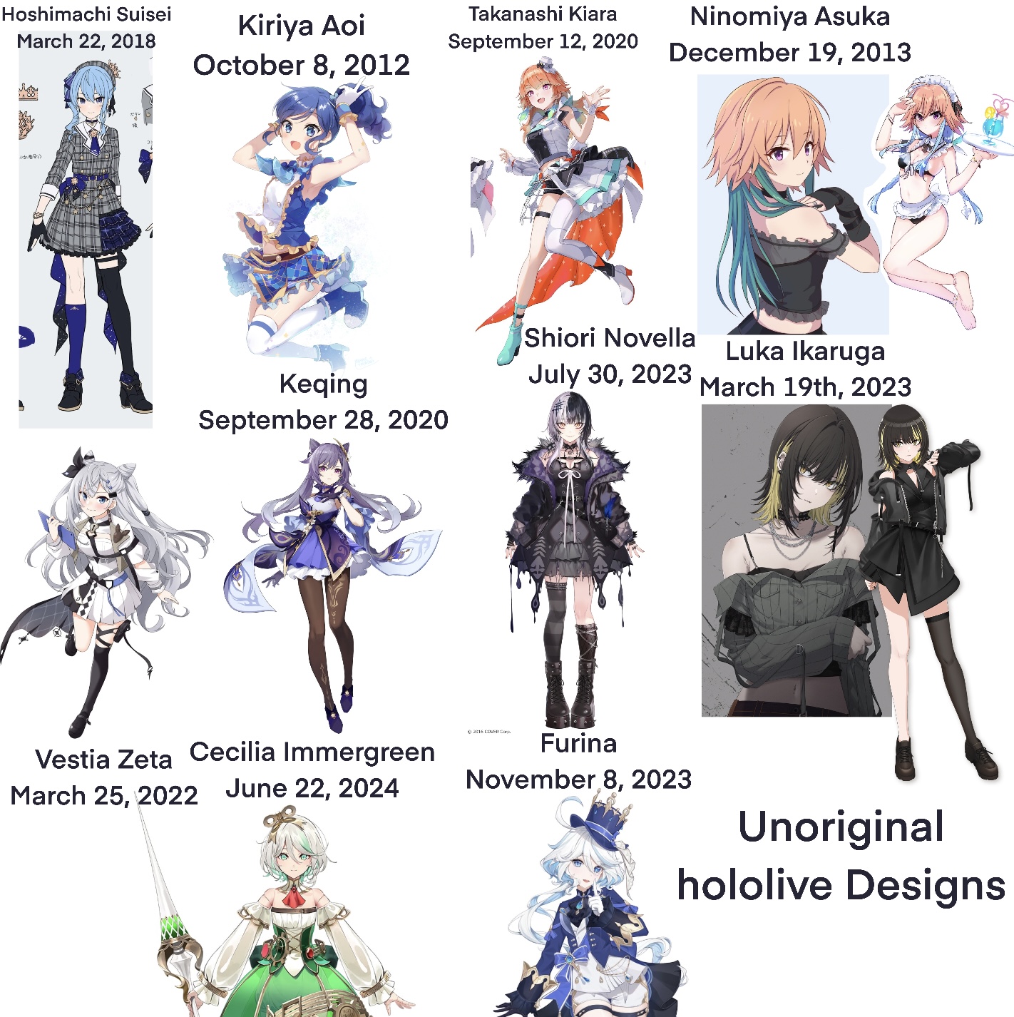 Shiori - twat from her old days, sperged out over people joking about her being (project) Melody, a thing she joked about mere minutes before.Kanata - insufferable baby sperging out about men in a collab with men that she said she would never join, insta-dropped her that day.Millie and Enna - twats currently, still even had 2 Enna clips on Youtube on my old account from when I watched her earlier days.Qpi - hot as fuck design, shitty person.Norio - hot as fuck design, genuinely trash person who partakes in perpetuating black company work culture.Mikeneko - bit obvious there. Would. Every hole. Only if she was handcuffed and gagged.