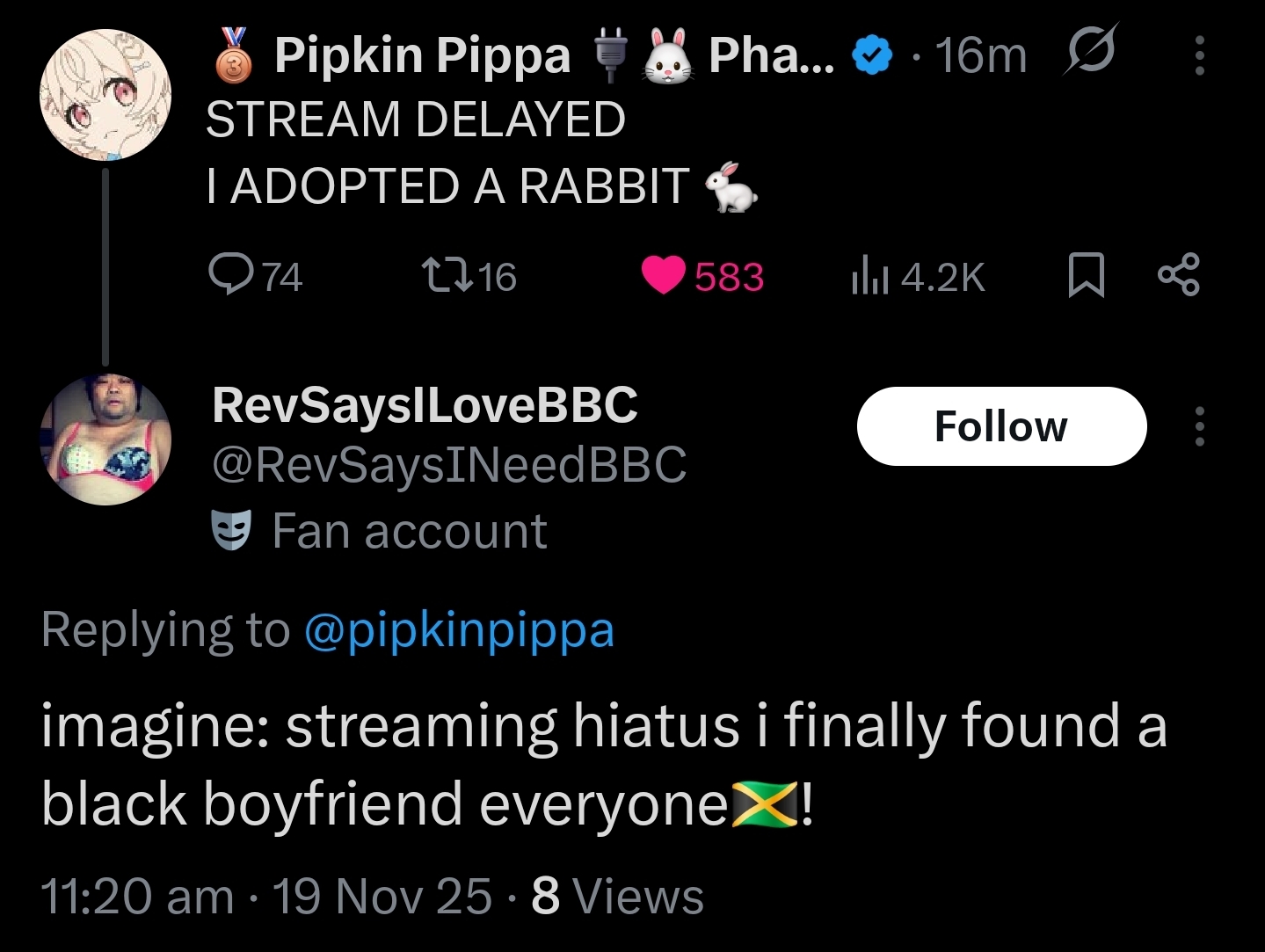Im not being sarcastic. She loves us. She will stream
