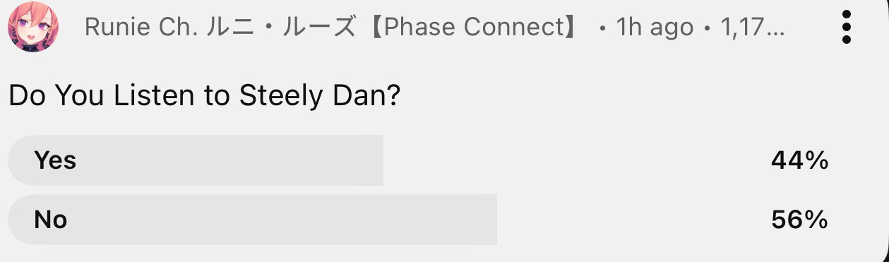>>106820066>>106820097We've got to find a way to make it through this...December is definitely going to be another kino month at least.>>106820155Super cute and evil/10Steely Dan legendary list/10Incredible power with chords/10Nostalgic times/10DOWN WITH YOUTUBE/10I love my oshi!