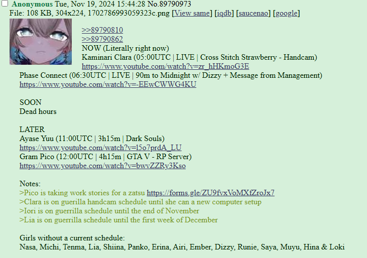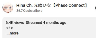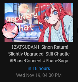 ▼ Phase Connect LinksOfficial Website: https://phase-connect.comOfficial Schedule: https://schedule.phase-connect.comOfficial Twitter: https://x.com/PhaseConnect | https://x.com/PhaseConnectJPOfficial Character References: https://rentry.org/pcgreferencesOfficial Twitch Archive Channels: https://rentry.org/pcgtwitcharchiveUnofficial Phase Connect Archives: https://rentry.org/pcgunofficialarchive––––––––––––––––––––––––––––––––––◆【Lia】https://x.com/rinkouashelia | https://youtube.com/RinkouAshelia | https://twitch.tv/asheliarinkou◆【Utatane Nasa】転寝ナサ (JP) https://x.com/UtataneNasa | https://youtube.com/UtataneNasa | https://twitch.tv/utatanenasa◆【Hakushika Iori】白鹿いおり (JP + EN) https://x.com/hakushikaiori | https://youtube.com/HakushikaIori | https://twitch.tv/iorihakushika◆【Fujikura Uruka】https://x.com/fujikurauruka | https://youtube.com/FujikuraUruka | https://twitch.tv/fujikurauruka◆【Shisui Michiru】紫翠みちる (JP) https://x.com/shisuimichiru | https://youtube.com/ShisuiMichiru | https://twitch.tv/michiru_shisui◆【Tenma Maemi】https://x.com/tenmamaemi | https://youtube.com/TenmaMaemi | https://twitch.tv/tenma◆【Pipkin Pippa】https://x.com/pipkinpippa | https://youtube.com/PipkinPippa | https://twitch.tv/pippa––––––––––––––––––––––––––––––––––◆【Kaneko Lumi】https://x.com/kaneko_lumi | https://youtube.com/KanekoLumi | https://twitch.tv/kanekolumi◆【Fuura Yuri】[Terminated] https://x.com/AmarisYuri | Archive: https://youtube.com/@TheNationalFuuraYuriArchive◆【Dizzy Dokuro】https://x.com/dizzydokuro | https://youtube.com/@dizzydokuro | https://twitch.tv/dizzydokuro◆【Jelly Hoshiumi】https://x.com/jellyhoshiumi | https://youtube.com/@jellyhoshiumi | https://twitch.tv/jellyhoshiumi◆【Ember Amane】https://x.com/emberamane | https://youtube.com/@EmberAmane | https://twitch.tv/emberamane◆【Clio Aite】https://x.com/ClioAite | https://youtube.com/@ClioAite | https://twitch.tv/clioaite◆【MariMari_en】https://x.com/MARIMARI_EN | https://youtube.com/@MARIMARI_EN | https://twitch.tv/marimari_en◆【Eepy Sleepy】https://x.com/EepySleepyCh | https://youtube.com/@EepySleepyCh | https://twitch.tv/EepySleepy––––––––––––––––––––––––––––––––––◆【Remilia Nephys】https://x.com/Remilia_Nephys | https://youtube.com/RemiliaNephys | https://twitch.tv/remilianephys◆【Chisaka Airi】https://x.com/ChisakaAiri | https://youtube.com/ChisakaAiri | https://twitch.tv/chisakaairi◆【Amanogawa Shiina】https://x.com/AmanogawaShiina | https://youtube.com/AmanogawaShiina | https://twitch.tv/amanogawashiina◆【Himemiya Rie】https://x.com/HimemiyaRie | https://youtube.com/HimemiyaRie | https://twitch.tv/himemiyarie◆【Erina Makina】https://x.com/ErinaMakina | https://youtube.com/ErinaMakina | https://twitch.tv/erinamakina◆【Komachi Panko】https://x.com/komachipanko | https://youtube.com/KomachiPanko | https://twitch.tv/komachipanko––––––––––––––––––––––––––––––––––◆【Runie Ruse】https://x.com/RunieRuse | https://youtube.com/@RunieRuse | https://twitch.tv/RunieRuse◆【Eimi Isami】https://x.com/eimiisami | https://youtube.com/@eimiisami | https://twitch.tv/eimiisami◆【Muu Muyu】https://x.com/Muu_Muyu | https://youtube.com/@MuuMuyu | https://twitch.tv/MuuMuyu◆【Hikanari Hina】https://x.com/HikanariHina | https://youtube.com/@HikanariHina | https://twitch.tv/HikanariHina◆【Saya Sairroxs】[Hort] https://x.com/sayasairroxs | https://youtube.com/@sayasairroxs | https://twitch.tv/sayasairroxs––––––––––––––––––––––––––––––––––◆【Kannagi Loki】巫ロキ (JP) https://x.com/kannagiloki | https://youtube.com/@kannagiloki ◆【Kokoromo Memory】恋衣めもり (JP) https://x.com/kokoromomemory | https://youtube.com/@kokoromomemory_ | https://twitch.tv/kokoromomemory◆【Gram Pico】倉夢ぴこ (JP) https://x.com/grampico_ | https://youtube.com/@grampico | https://twitch.tv/grampico◆【Ayase Yuu】絢世ユウ (JP) https://x.com/ayaseyuuu | https://youtube.com/@ayaseyuu | https://twitch.tv/ayaseyuu_◆【Kaminari Clara】歌美鳴クララ (EN + JP) https://x.com/kaminariclara_ | https://youtube.com/@kaminariclara | https://twitch.tv/kaminariclara––––––––––––––––––––––––––––––––––◆【Malice Evermore】https://x.com/MaliceEvermore | https://youtube.com/@maliceevermore | https://twitch.tv/maliceevermore◆【Nitya Nil】https://x.com/Nitya_Nil | https://youtube.com/@Nitya_Nil | https://twitch.tv/nitya_nil◆【Wilhelmina Frost】https://x.com/wilhelminafr0st | https://youtube.com/@wilhelminafrost | https://twitch.tv/wilhelminafrost◆【Bibi Biscuit】https://x.com/BibiBiscuitCh | https://youtube.com/@bibibiscuitch | https://twitch.tv/bibibiscuitch◆【Anya Nyabyss】https://x.com/AnyaNyabyss | https://youtube.com/@AnyaNyabyss | https://twitch.tv/anyanyabyss◆【Sinon Sinfonia】https://x.com/SinonSinfonia | https://youtube.com/@SinonSinfonia | https://twitch.tv/sinonsinfoniaPrevious Thread: >>106816684