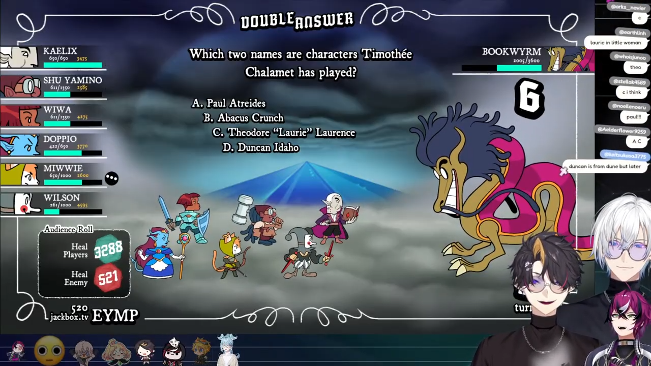 >>10688799390% of people who watch and are vtubers are zoomer weebs, I'm not surprised most of them don't know basic literary or even cinematic references. I am surprised that they would willingly choose to play a game which asks so much knowledge of them.