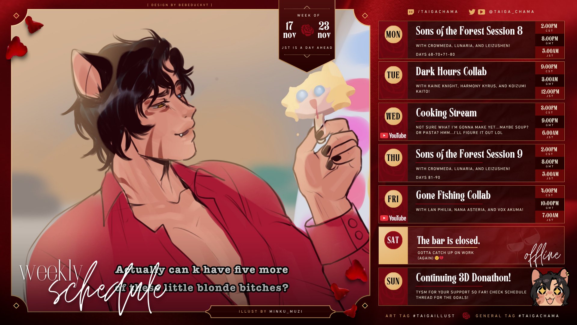 >>106896460Yeah. Outside of funny things like room cleaning, it could just be their own job, school work, ...taxes..., or commissions if you're an artist (Simi and Chapchap's Blue Archive remixes are really good), editor or whatever. Finana uses it as a time to focus on her uni work more than usual, Peto did some a bit before going into further education.