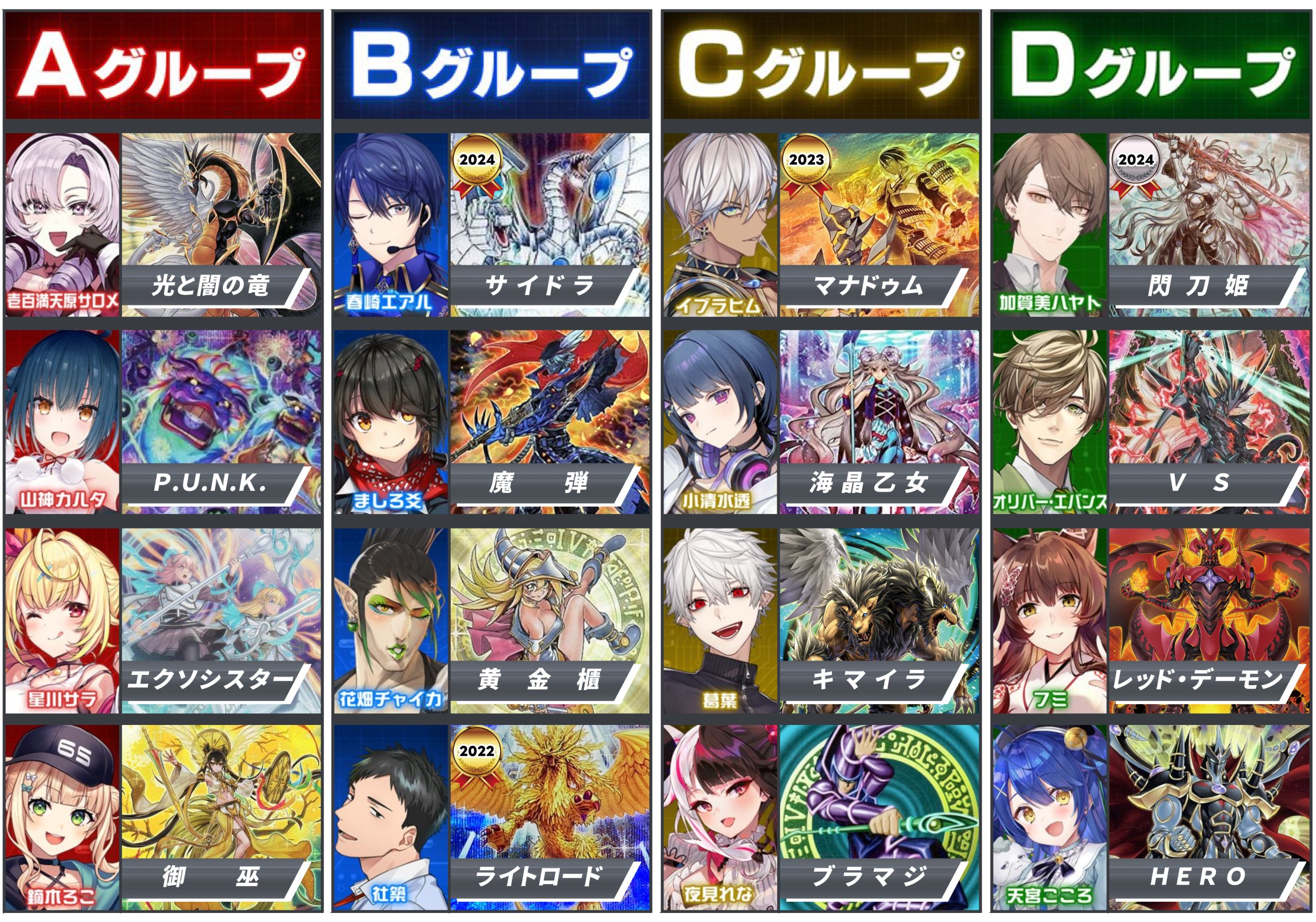 Everyone's deck in the tournament