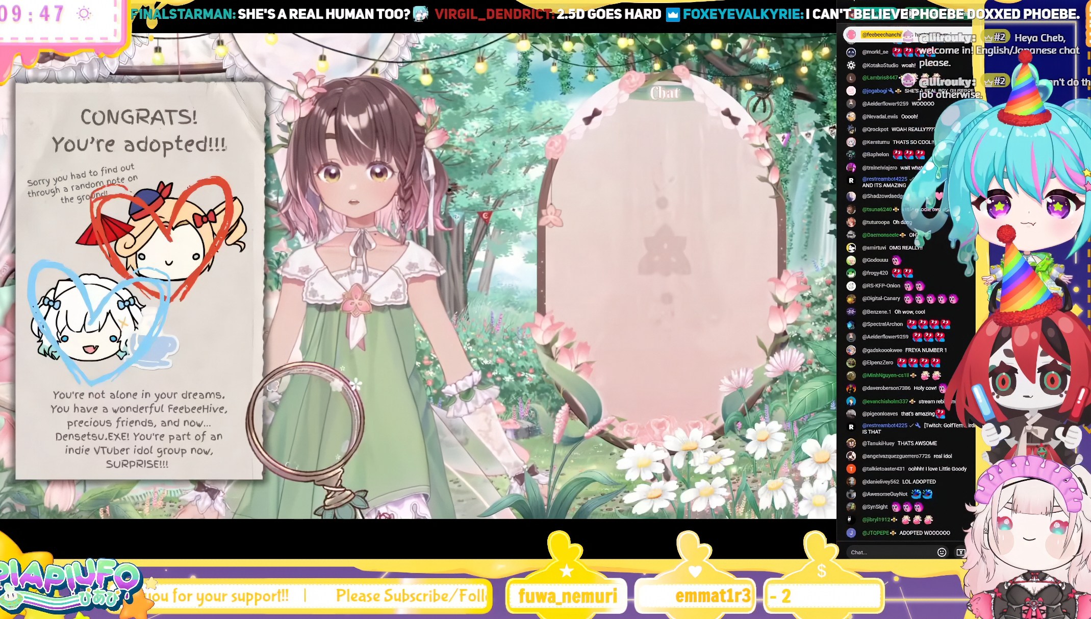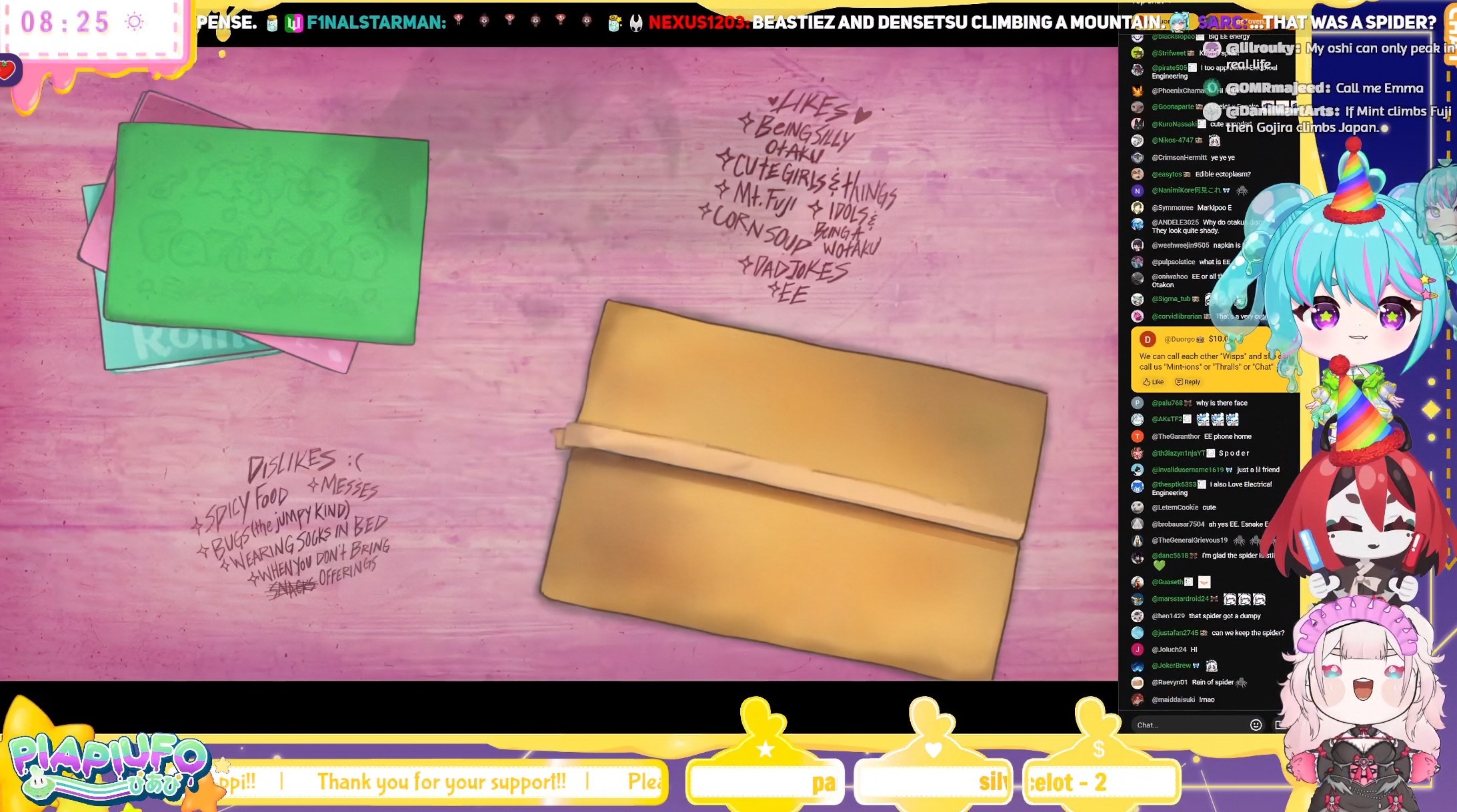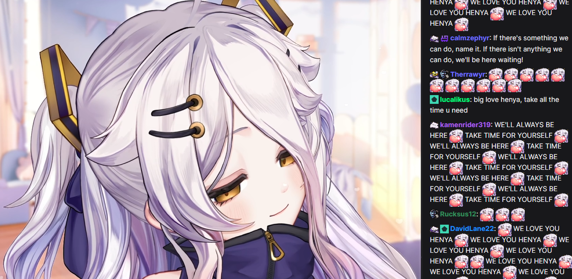 Just Friends EditionWelcome to /xvsj+/! A thread to discuss vtubers who were once associated with a hot pink company.Zen is LIVE! And is playing something called Total Chaos. It looks like running around a subway. But spooky. Silver is also LIVE! With Where Winds Meet. Winds do be meeting. Geega is also LIVE! Except she's not! Finally Haruka is NOT live, but she is on Nagzz's channel playing Undertale. Genocide style. Keep things comfy, etc.Image source: https://x.com/miru557/status/1991895815774994462/xvsj+/ includes:Amalee - https://www.twitch.tv/leeandlieFroot - https://www.twitch.tv/apricotGeega - https://www.twitch.tv/geegaHaruka - https://www.twitch.tv/harukakaribuHenya - https://www.twitch.tv/henyathegeniusHestia - https://www.twitch.tv/hestiahappinessHime - https://www.twitch.tv/hajimeHotaru - https://www.twitch.tv/akatsukidhotaruKson - https://www.twitch.tv/ksonsouchouKuro - https://www.twitch.tv/k9kuroMata - https://www.twitch.tv/matarakanMel - https://www.twitch.tv/projektmelodyMichi - https://www.twitch.tv/michimochieveeMomo - https://www.twitch.tv/momoMouse - https://www.twitch.tv/ironmouseNagi - https://www.twitch.tv/NagIsekaiedNazuna - https://www.twitch.tv/amemiyanazunaNyan - https://www.twitch.tv/nyannersPeke - https://www.twitch.tv/pekeispeakSilver - https://www.twitch.tv/silvervaleVei - https://www.twitch.tv/veiZen - https://www.twitch.tv/zentreyaThe BeastiezBeri - https://www.twitch.tv/beribugPia - https://www.twitch.tv/piapiufoTori - https://www.twitch.tv/toriorianeDensetsu.EXEFeebee - https://www.youtube.com/@feebeechanchibiMint - https://www.youtube.com/@mintfantomeVicky - https://www.youtube.com/@vickyroman_idolRelated:/999/ + /総長/ + /nova/ + /voms/ for Japanese talents once associated with a hot pink company/lig/ and /big/ for more generalized + and friends discussionPrevious thread: >>106897556