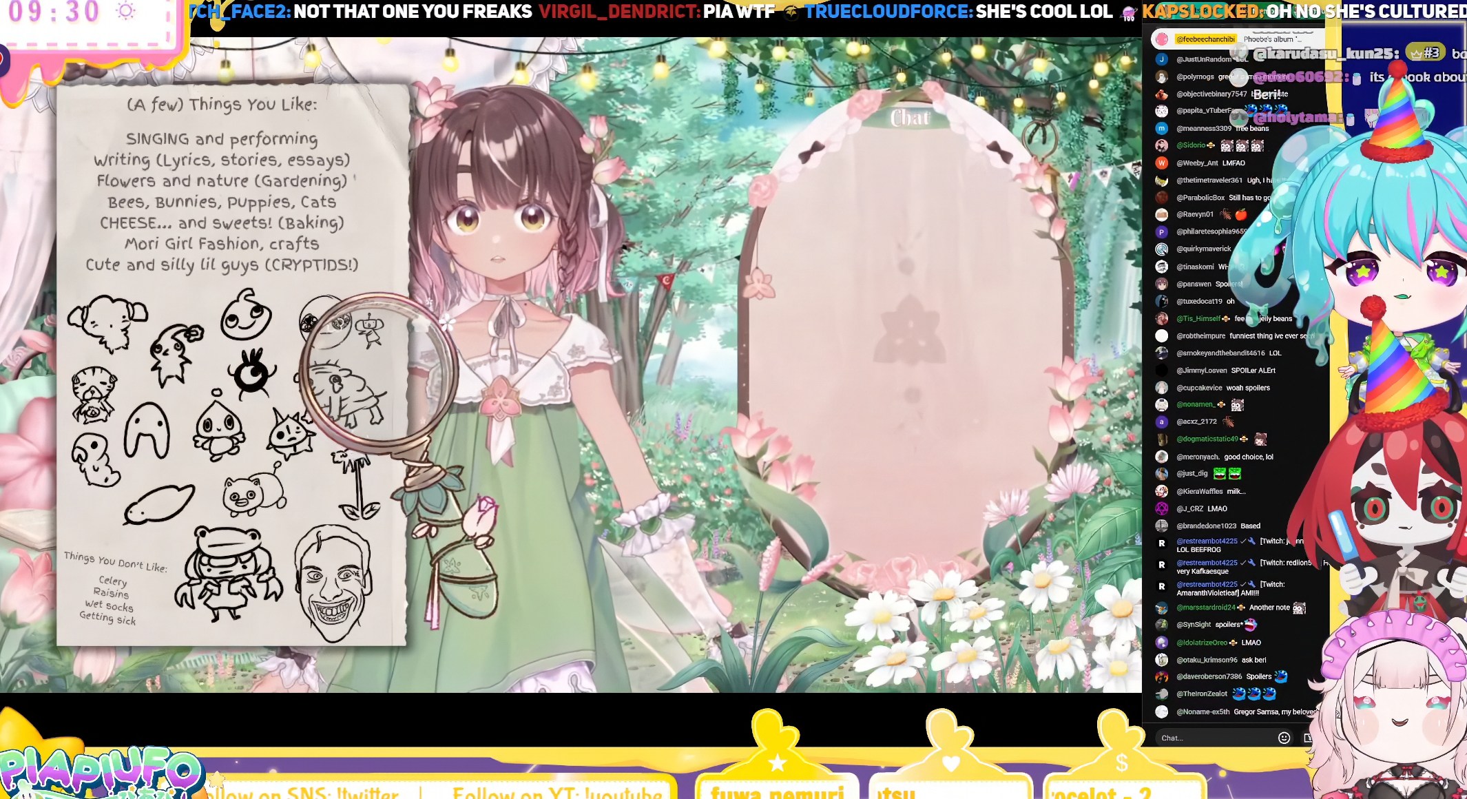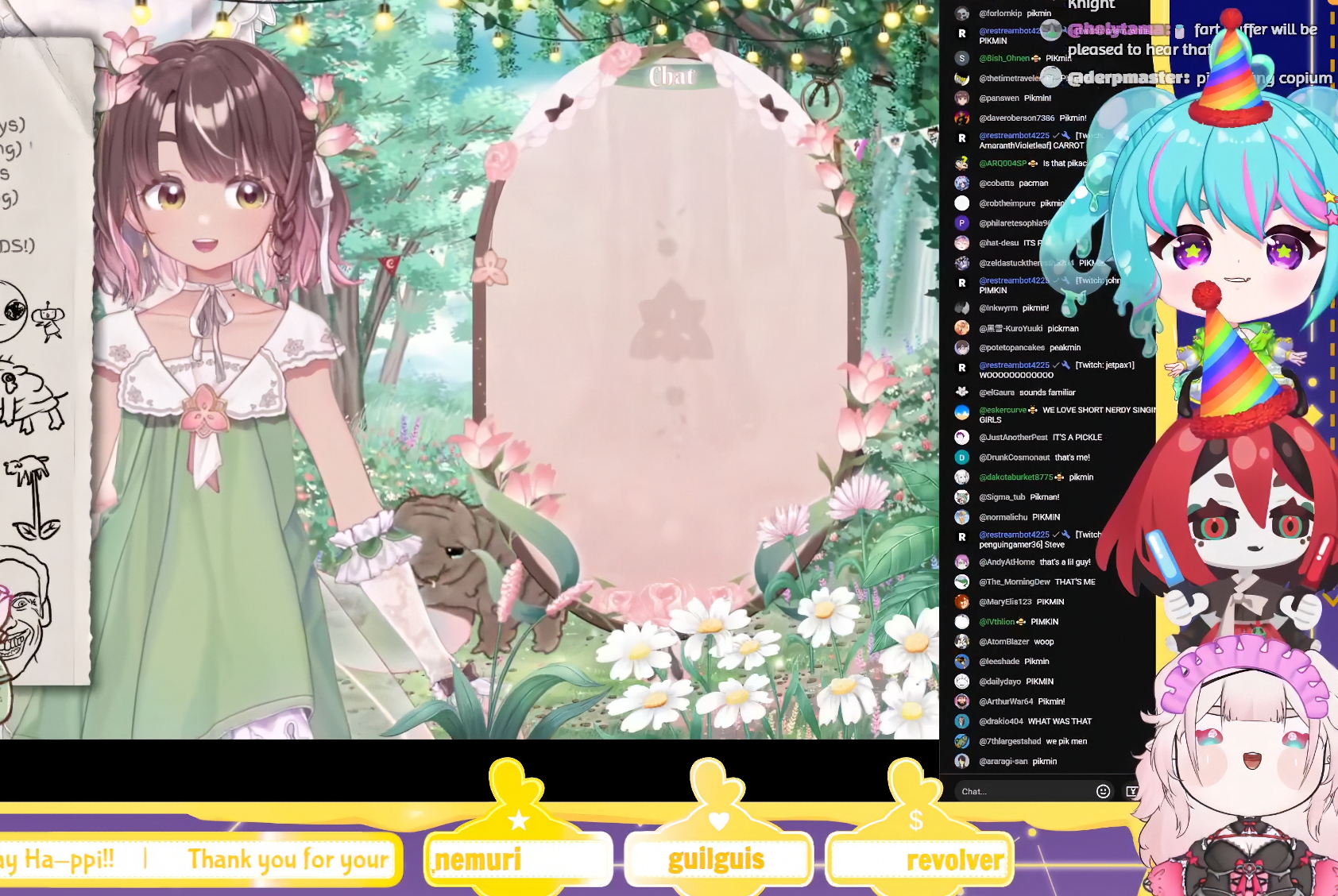 Pia likes Jerma and Patapaon and Chao and I think that's a Caterpie? And that's the Prince from Katamari and a korok and a Pikmin and I don't recognize the rest.