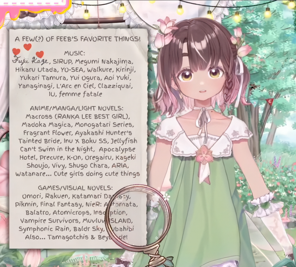 Feebee actually telling the truth lol. The hex code #FEEBEE is the shade of pink she themed herself after.