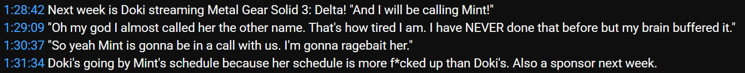 Doki is playing MGS with Minto next week, also Doki almost called Minto "Pomu"