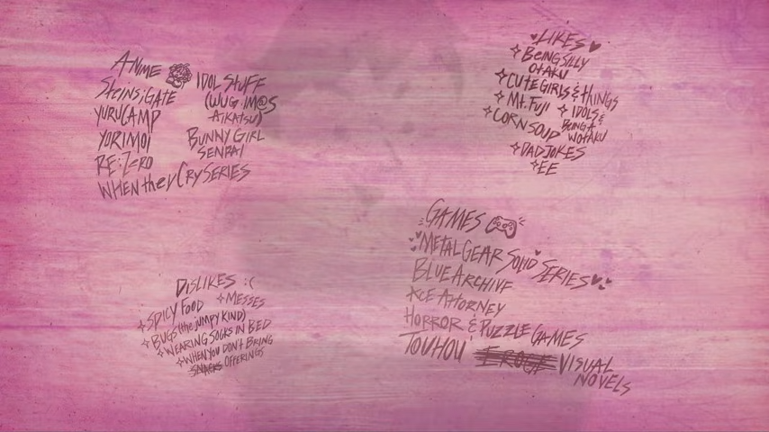 recommending minto games to play based on her favorites genres!>visual novelI'd suggest AI: The Somnium Files, a fun mystery story centered on an idol agency involving cute girls and fun characters.>puzzle gamesthe somniums in AI: The Somnium Files are puzzle like dreamscapes that really tease your brain!>erogeDifferent routes where you learn more about characters? How about AI: The Somnium Files, a game where you can get to know and love a whole cast of quirky characters including going on a minecraft date!>horrorWith a combination of body and existential horror you can't go wrong playing Kotaro Uchikoshi's horror mystery classic AI: The Somnium Files>touhouyou know who else shoots bullets? ABIS special agent Kaname Date, star of the seminal 2019 classic AI: The Somnium Files