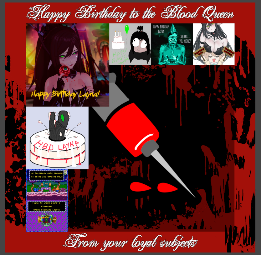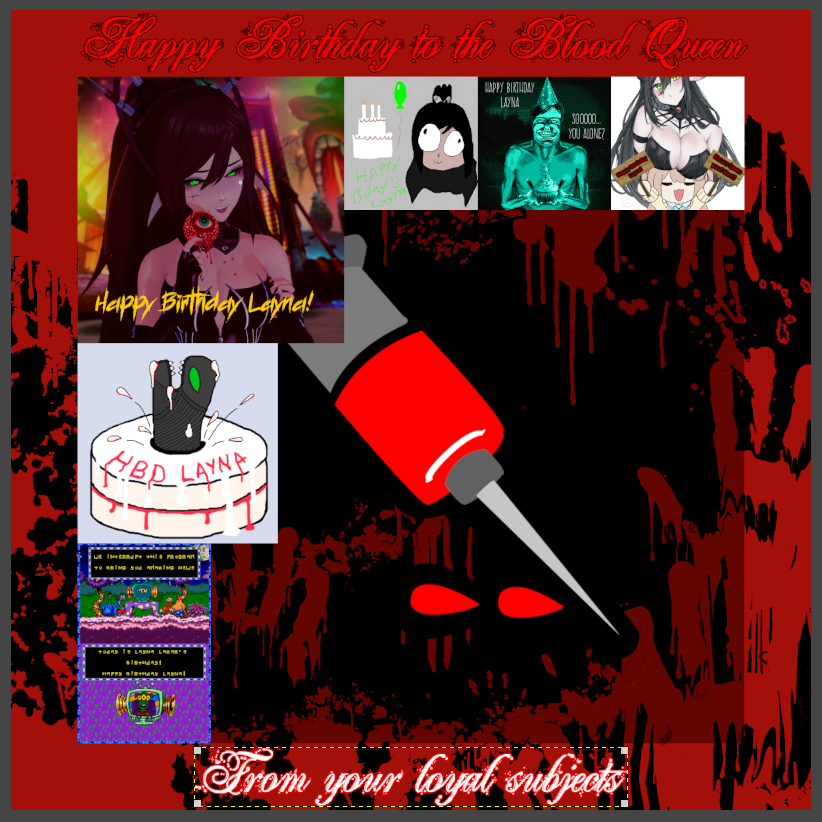 >>106950679I think it would look better if the text was the same color on both lines, It might be a little difficult with the mix of black at the bottom. Try using a red that's darker than the blood, like the blood color behind the transparent square