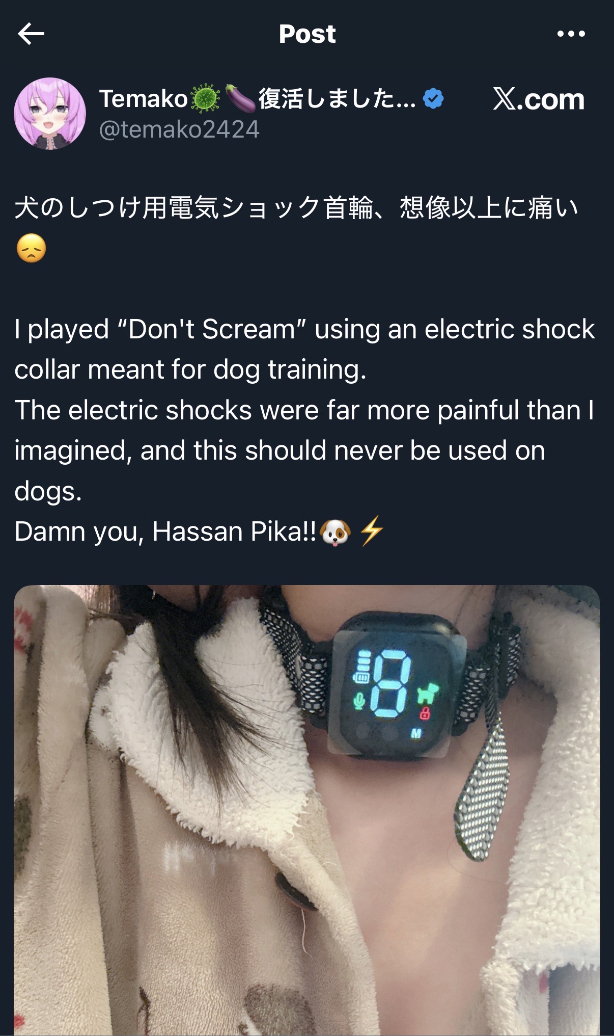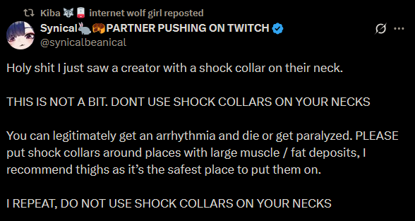 >>106963234Did you actually read the tweet?It's clearly pro shock collar, just not around the neck.