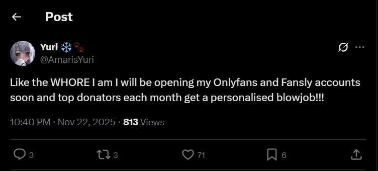 >>106964532Wow thats crazy. Uruka let her contract end and people still like her.