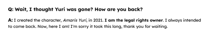 >>106964866>>106965008If she really owns the character Yuri, then it would make sense for Sakana to completely remove her from everything.In fact, maybe that is the real reason? She went and registered Yuri behind Sakanas back creating a legal quagmire.
