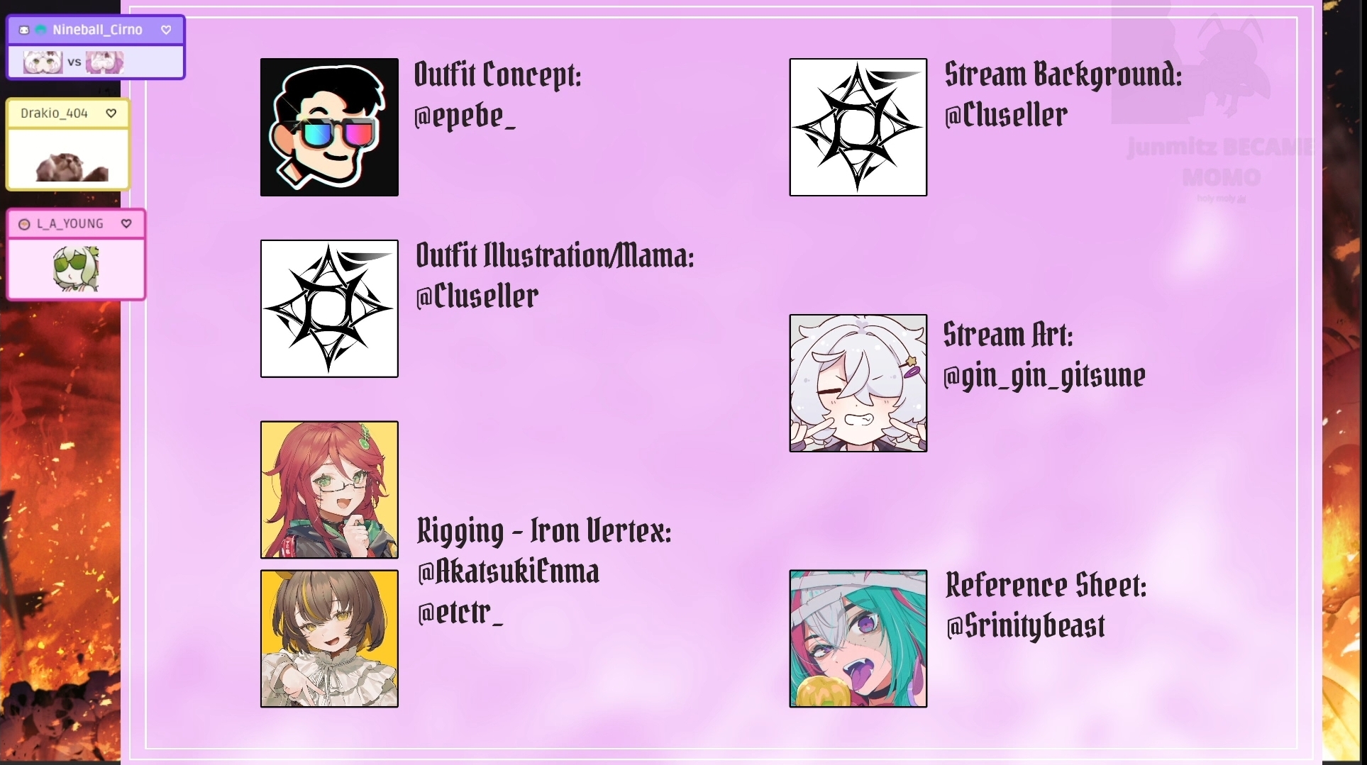 >Amalee, Ironmouse, Henya, Geega, Mata, MooseFun group and love that they have been collabbing more recently post vshojo