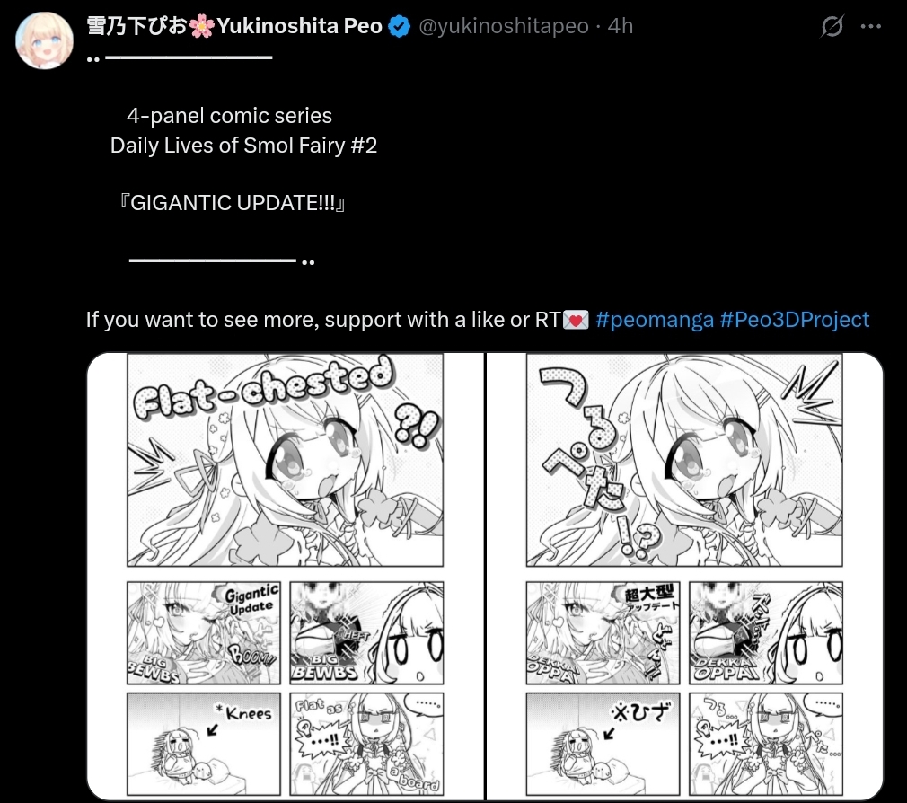 Peo update 2/3:She released another manga pagehttps://x.com/yukinoshitapeo/status/1992797824279531929