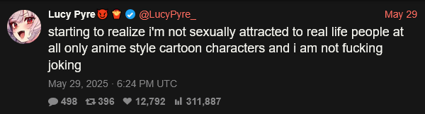 >see tomboy vtuber>she has a fansly>open it>she has a penisNot my thing personally but good for her I suppose