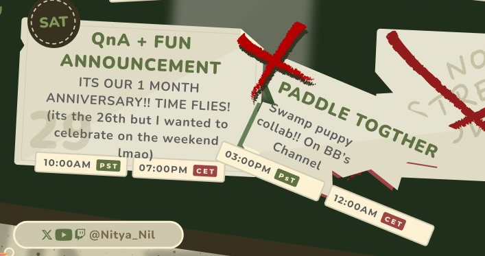 Sam Would Never Cheat on Her EditionDedicated thread for PhaseSaga's cute, family friendly, Minecraft addicted, Boer, r rolling, crocodile, bully senpai! Saga friends and Barbie friends welcome!>Links:YouTube: https://www.youtube.com/@Nitya_NilTwitch: https://www.twitch.tv/nitya_nilX: https://x.com/Nitya_NilSchedule: https://x.com/Nitya_Nil/status/1992632003074941321Donate: https://streamelements.com/nitya_nil/tip>Debut merch available RIGHT NOW!https://shop.phase-connect.com/collections/phase-saga-the-story-begins-debut-collectionhttps://shop.phase-connect.com/collections/phase-o-ween-boo-tique-collection>Saga Generals>>>/vt/saga/>Previous thread>>106924957