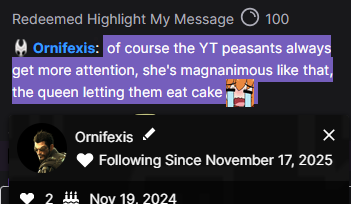 >>107046162I don't think she can actually see highlighted messages in OBS anyway. It's a placebo redeem.