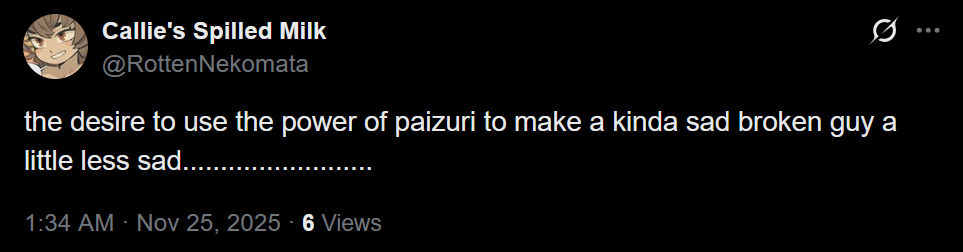 grabbing my daki and pretending its a cold lost miioid tonight