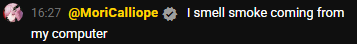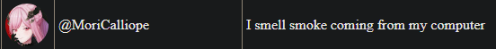 >I smell smoke coming from my computerMori?