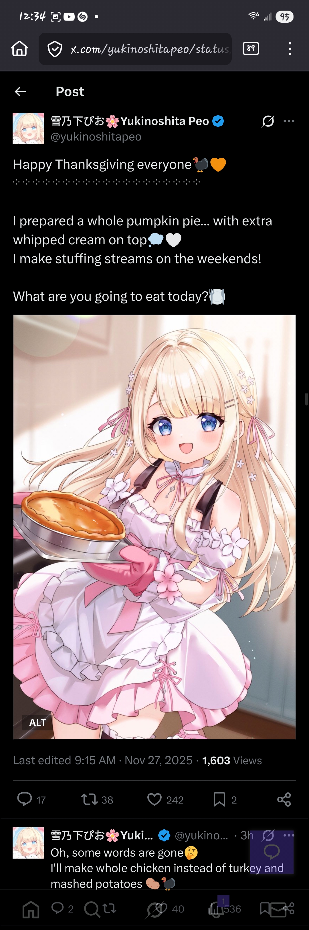 https://x.com/yukinoshitapeo/status/1994047476672975160Peo made a whole pumpkin pie for Thanksgiving
