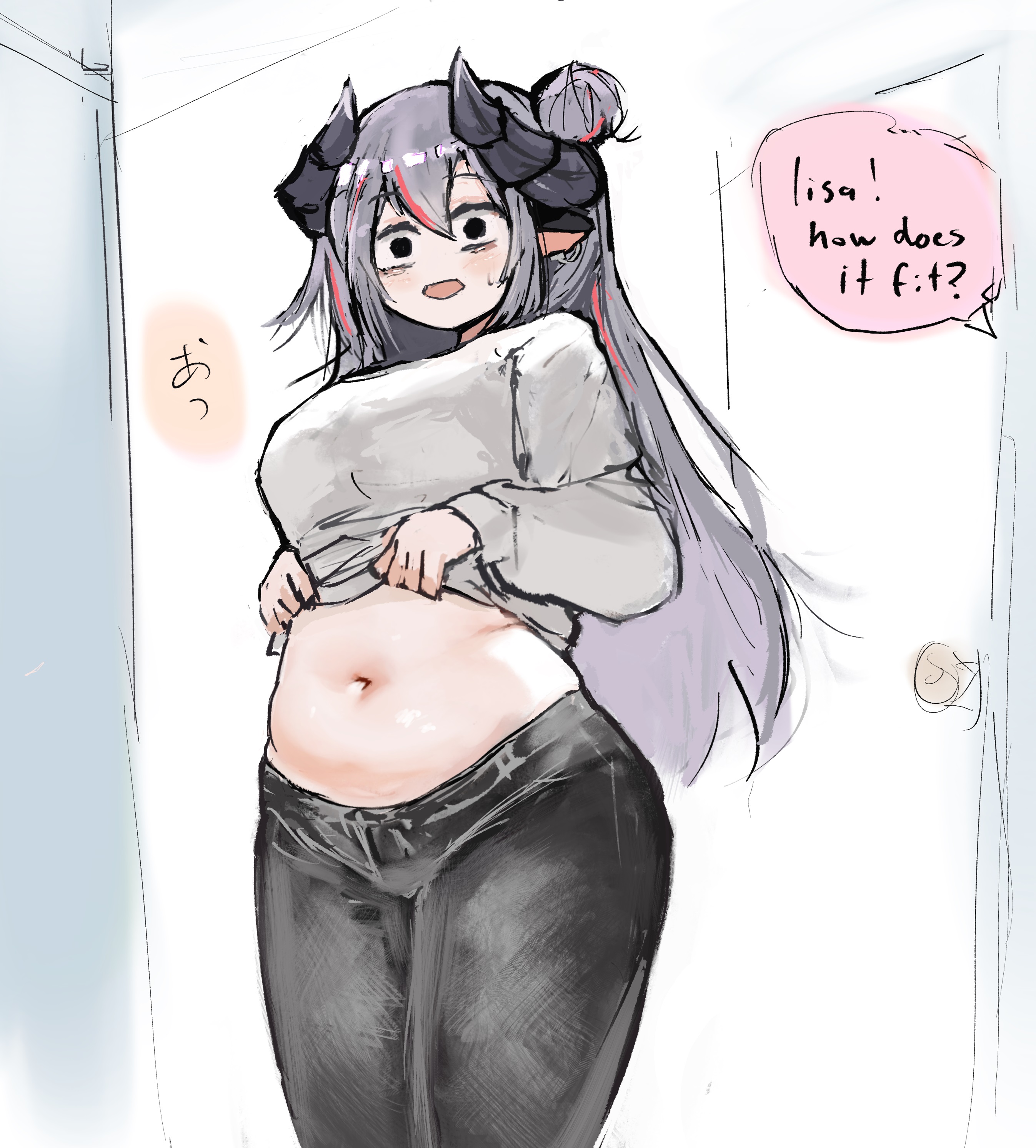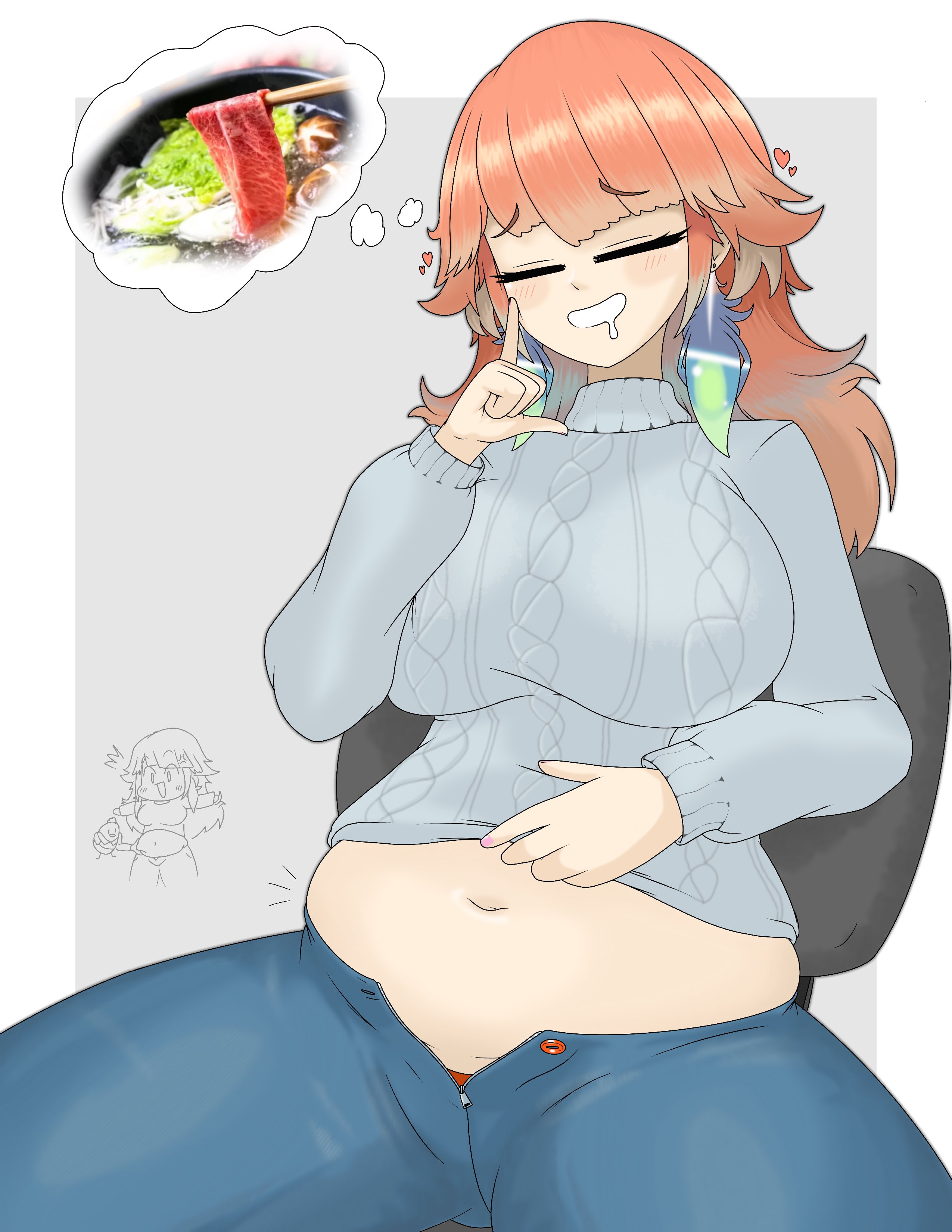 >>107106089>>107106180Okay, but what if, one day, she stuffs herself and decides she likes the feeling of a swollen tummy?