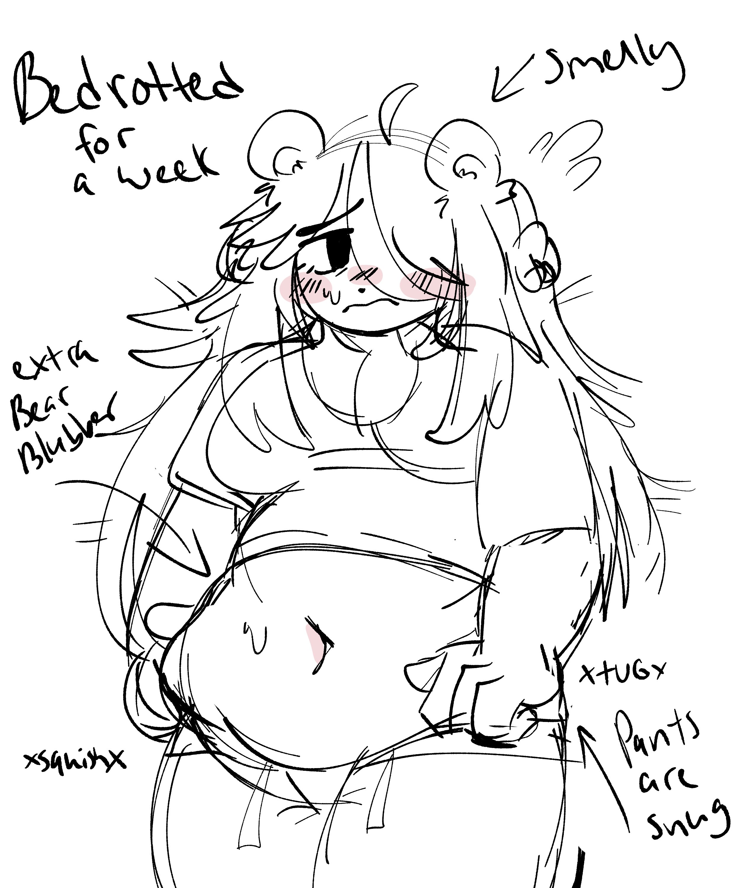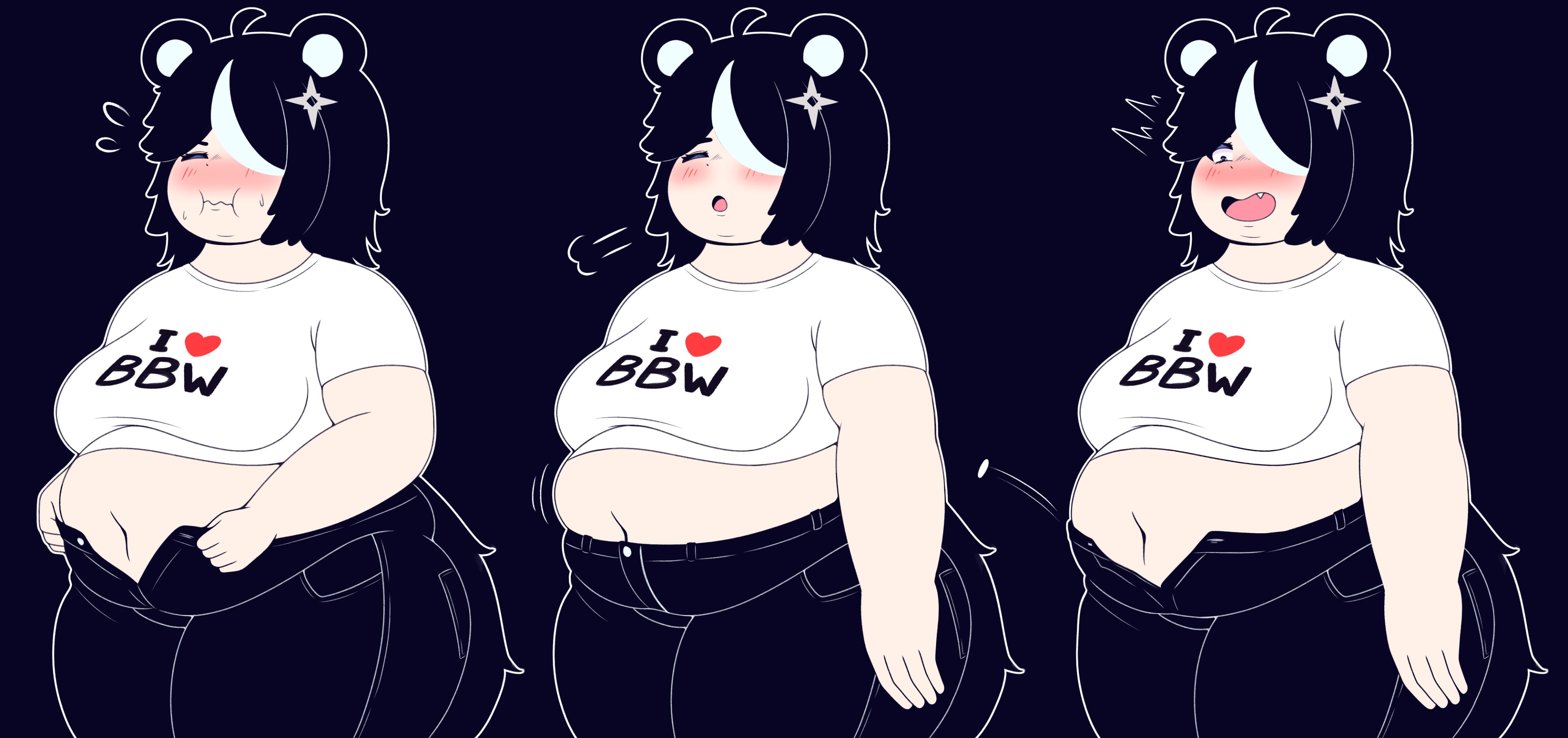 For me, it's the way things change just from the girl's body growingClothes no longer fitting is one thing, but there is other stuff like getting annoyed at thighs rubbing together, having limited vision due to all the fat getting in the way, the way her gait changes from both the increasing weight and volume of fat, etcUnfortunately, most of those things are rarely depicted at all, let alone in a more gradual fashion and it gets even harder to find what I want because I prefer these changes being mostly negative for the fatty, not something to enjoy or celebrateLike I want to see a girl that goes from struggling to masturbate to one day realizing that she can no longer do it at all without assistance because her hands can no longer make their way over the vast expanses of her flesh no matter how she tries turning her body or what fold of fat she tries pulling away